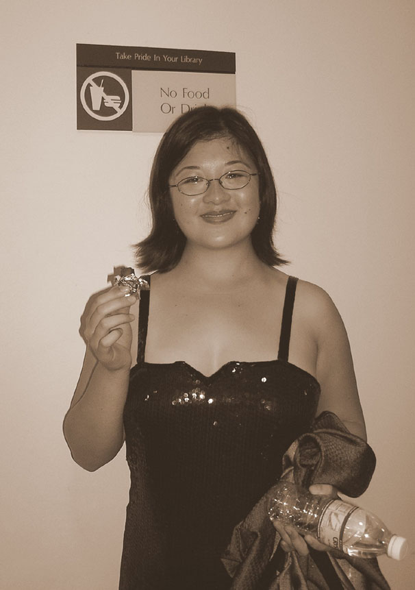 1:16 AM. I am exhausted and falling over and LOSING MY MIND (evidence: I first typed “losing my mead” and then I had to stare at that for a moment before I figured out what was wrong). I have just spent what felt like hours turning the apartment upside-down in search of a black vintage handbag to bring to Cindy’s wedding in San Jose. I’ve looked in every reasonable place (and quite a few unreasonable ones), and it hasn’t turned up anywhere. For quite a while I thought I’d find it when I found my green vintage handbag, but then I found the green one and the black one wasn’t there. The last time I can remember using the black bag was back in October, when I brought it to the Historic Dance Ball at Powell Library (you can just barely see the handle in my hand here). October?!?! That doesn’t give me much to work with. I’m sure I couldn’t have lost the bag while I brought it out, because I’m always very careful with my purses and keep track of them at all times. I’d definitely have my alarm whiskers out if I came home without my purse. So… WHERE IS THIS BAG?! The only thing I can think of is: (a) it somehow got mixed up with other items and got thrown out or otherwise left the apartment without my noticing, (b) it’s in the car (and if I lost it in October this has to be the van, but I can’t believe this because I cleaned out the van carefully when I brought it back home), or (c) it is still in the apartment, in someplace I haven’t thought of looking. None of these seems likely, (c) least of all. I’ve looked in cabinets, in coat pockets the bag doesn’t even fit in, inside other bags… nothing. I am so tired and I haven’t finished packing because of this bag, but now it’s just driving me crazy that I can’t find it. And then what bag will I use? ARGH!!!!!!! I hate to admit defeat and leave without it, but I just really don’t even think I can stay up another hour right now. I need to finish packing and get to bed. Oh I am SO frustrated!!!