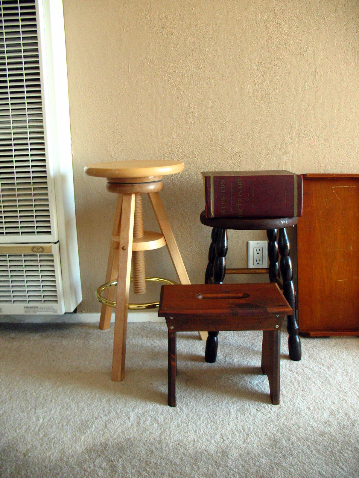 Yesterday was a quite busy day; along with all the crafting, I also managed to make a fruitful estate sale/thrift store/yard sale run in the morning, finding two stools, a giant old dictionary (1950s-vintage), and a short little bench. Jinny and I have yet to finalize our booth display, but I’ve been trying out some ideas that I think will work well. I’m excited — I think my display will be very cute and interesting to go through. I know when I’m at a show, I’m always drawn to the displays that are a little different from the standard thing that everyone else is doing. And I think my display might foster conversation, too, which is always nice. One of my favorite things about doing a show, as opposed to selling online, is that I get to meet the people who browse my creations. On the web, the only people who are required to contact me are those who buy from my shop, but even then, they don’t have to say anything. I don’t generally get many “hello I love your stuff!” messages, whereas at a show I can really see how people are reacting and interacting with what I make. Since I rarely duplicate any of my creations (even if the design is the same, the materials usually aren’t), I really feel attached to each one as an individual. I’d much rather send them home with someone I have some kind of connection with, rather than a faceless name on a screen! So I am very much looking forward to talking with the attendees at Craft Happy. π