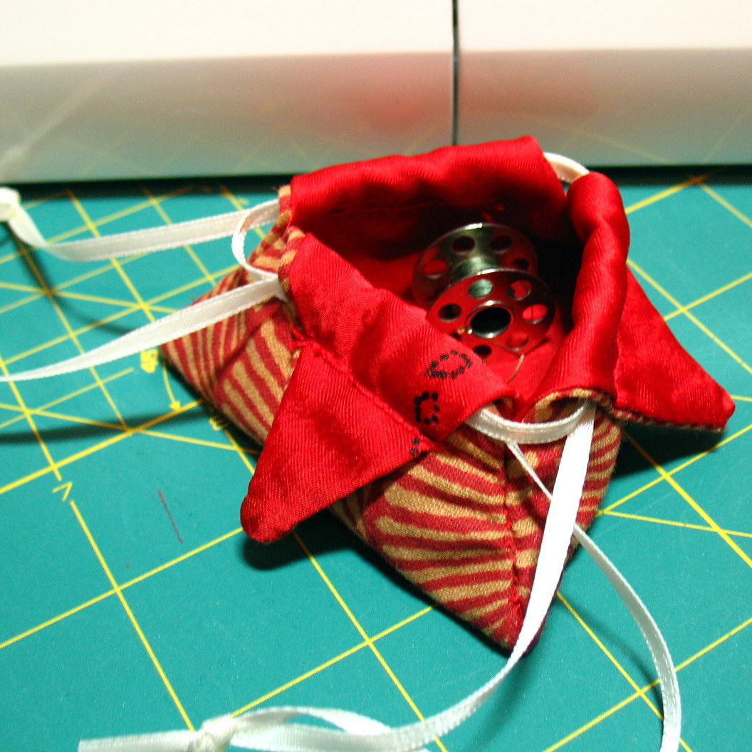 when I brought them to FabMo, I only brought the nicest (read: most expensive) ones, and displayed them individually or in pairs on cake stands. This time, I included several smaller (under $20) ones, and lumped them all together, so they wouldn’t seem quite so unattainable. My thought was, if someone likes the concept and fabrics but not the $45+ price tag, they’ll be glad to see there are more affordable options too. But what ended up happening? Many people expressed interest in the expensive ones, while poor Daffy and the ruby pouch I rushed the night before the show got barely a glance. Hmm.