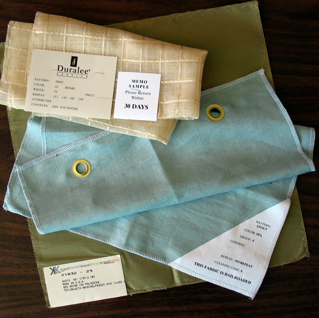 Fabric samples may be free, but preparing them is a tedious process. The vast majority of the samples are smaller than one yard; a 25″ square is considered a very big piece. Most of my pieces this time are about 12″ square, like dinner napkins. Nearly all the samples still have their showroom tags on, and these are attached with staples, adhesive, or stitches (see above photo). They might also have grommets or wires in them. These all need to be removed. To catalogue the fabrics, I cut a small swatch from each one and make a note of how big the entire sample is. I staple this to a card and hole-punch it.