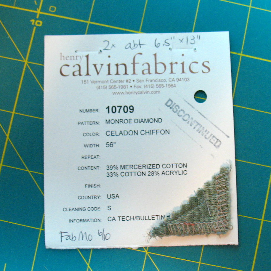 I think many people have a misconception that working with recycled materials is somehow easier than using new materials. That can be true, but in my case it is not. If I went to Jo-Ann and bought two yards of linen, I could throw that yardage into the wash and an hour or so later, I’d have clean fabric ready to use. Preparing the swatch for my catalogue would take maybe 20 seconds more. With the samples, to get the same amount of fabric, I have to individually deal with about 12-24 distinct fabrics in the way I described in the above paragraphs (given that an average bolt of fabric is about 44″ wide).