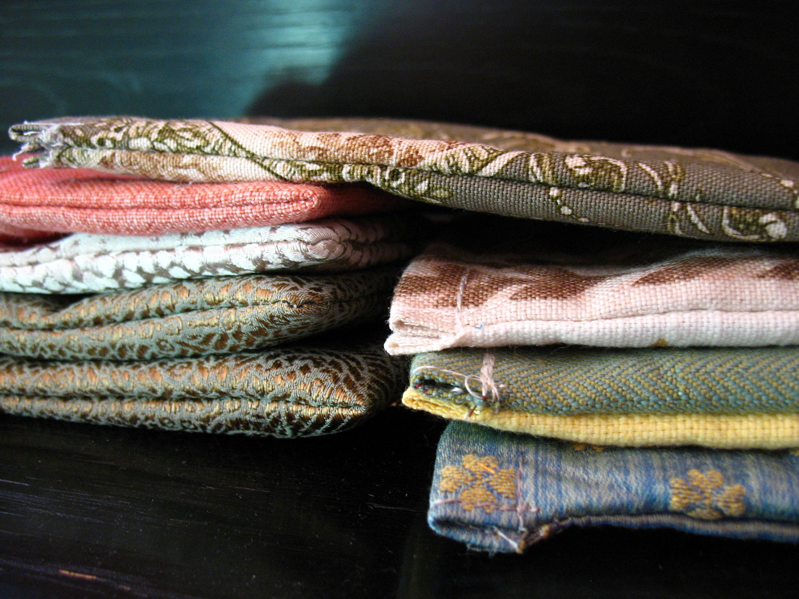 Mini pouches waiting for their ribbon drawstrings