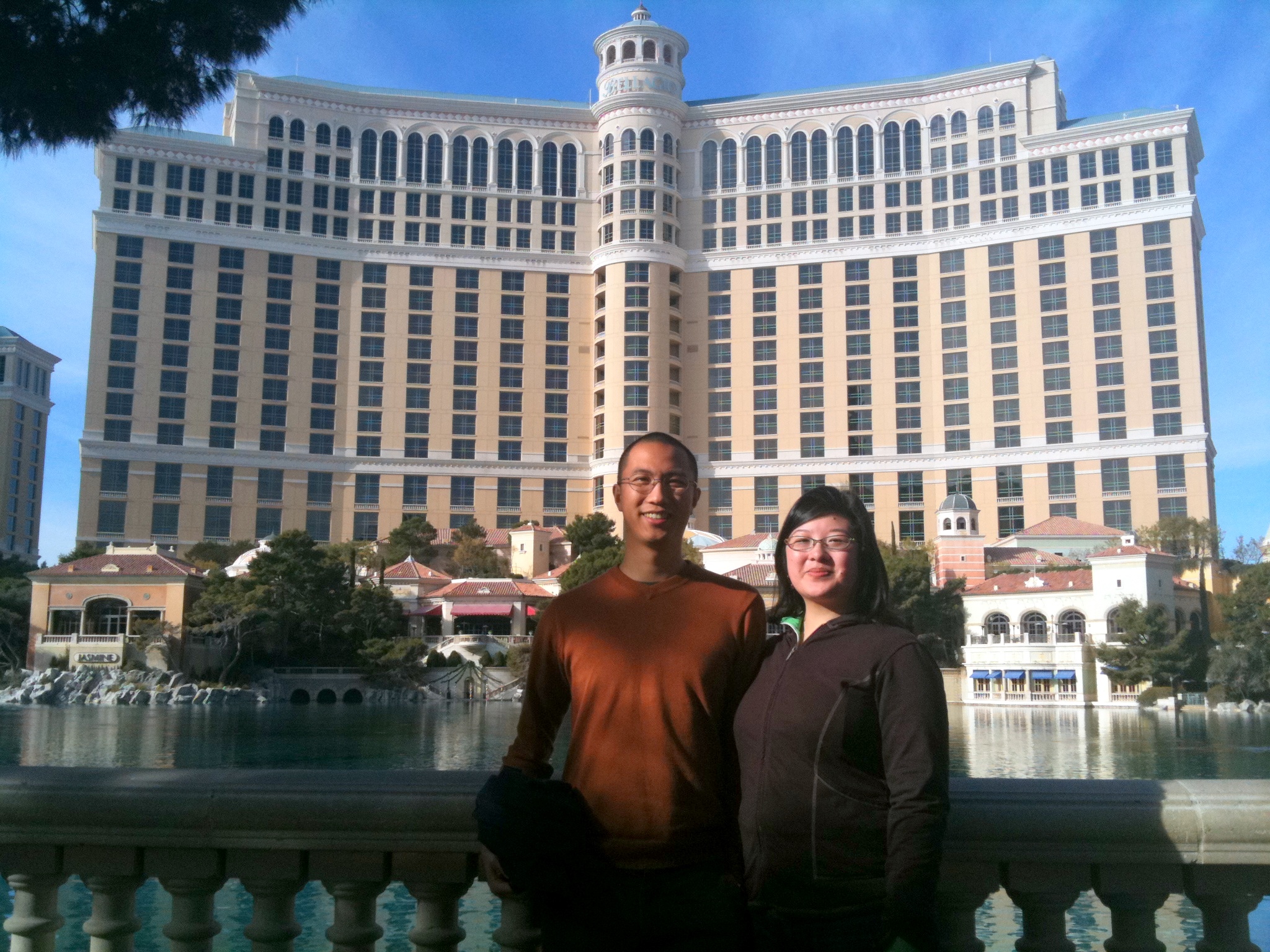 Before we left for Vegas, I was strangely nervous. I’m always a little anxious about unfamiliar places, and I didn’t know anything about the city and refused to research it because I didn’t want to prejudice myself. When we arrived, I was surprised how much it reminded me of the new side of Macau, only with desert and mountains in the background instead of ocean! At Jason’s suggestion, we were all staying in the MGM Grand, a mind-boggling megalith (but then all the hotels on the Strip are insanely huge) located right on what Wikipedia tells me is one of the busiest intersections in the country. Along with its restaurants, theatres, and casino amenities, the MGM boasts a lion habitat with genuine lions… we saw two of them on Saturday afternoon, young ones lying around resting, their giant paws reminding me of Tisha’s big feet. There was a rodeo event going on all weekend, so everywhere we looked, we saw cowboy hat-wearing guests right alongside the Asian tourists and miniskirt-clad drinks waitresses, and the music playing on the sound system was always country (which, luckily, I like).