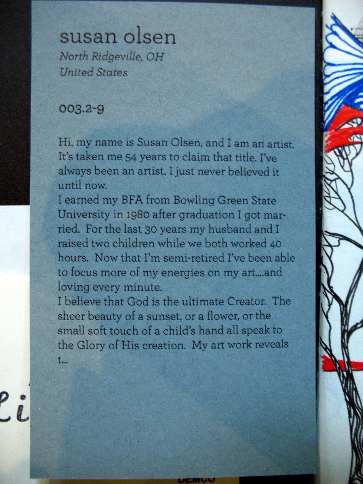 Artist & location: Susan Olsen, North Ridgeville, OH