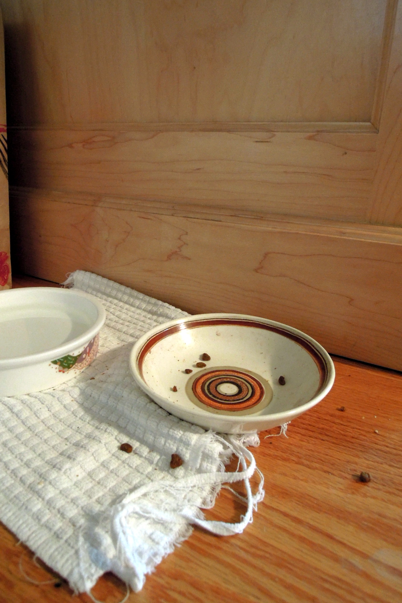 4. A small plate with a half-eaten piece of toast on it, that’s been sitting on the kitchen table all day