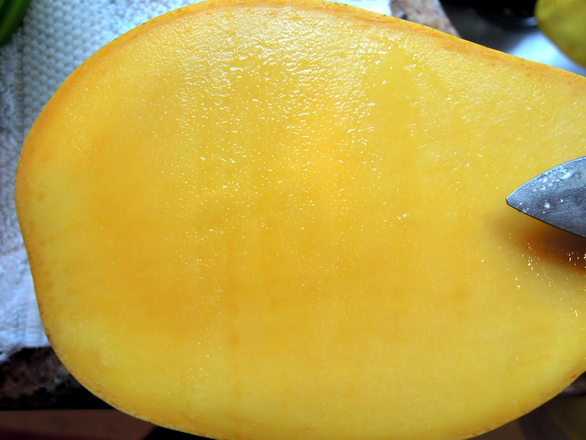 “Actually it doesn’t smell ripe. It smells green, like those hard pale thin slices Erik’s mom served us once after a meal, or the skinny slivers drizzled with fish sauce and pepper Lisa F liked to eat at Red Corner Asia.* I bought it because it felt ripe, yielding to the inquisitive pressure of my fingers, its firm softness a promise of sweetness and delight. But my nose doesn’t steer me wrong. Under my teeth and tongue it’s the same deceptive thing. The melting smoothness says I chose the right fruit. But the tartness and astringency tell me something has gone sadly awry. This is not a ripe mango.”