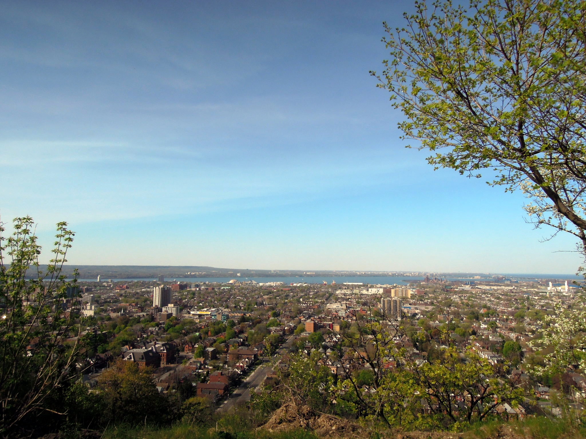 Finally, we parked above the lower part of the city of Hamilton, at an overlook. From there we could see Hamilton, Lake Ontario, and beyond it,ย Mississauga (where our family friends live) and Toronto.