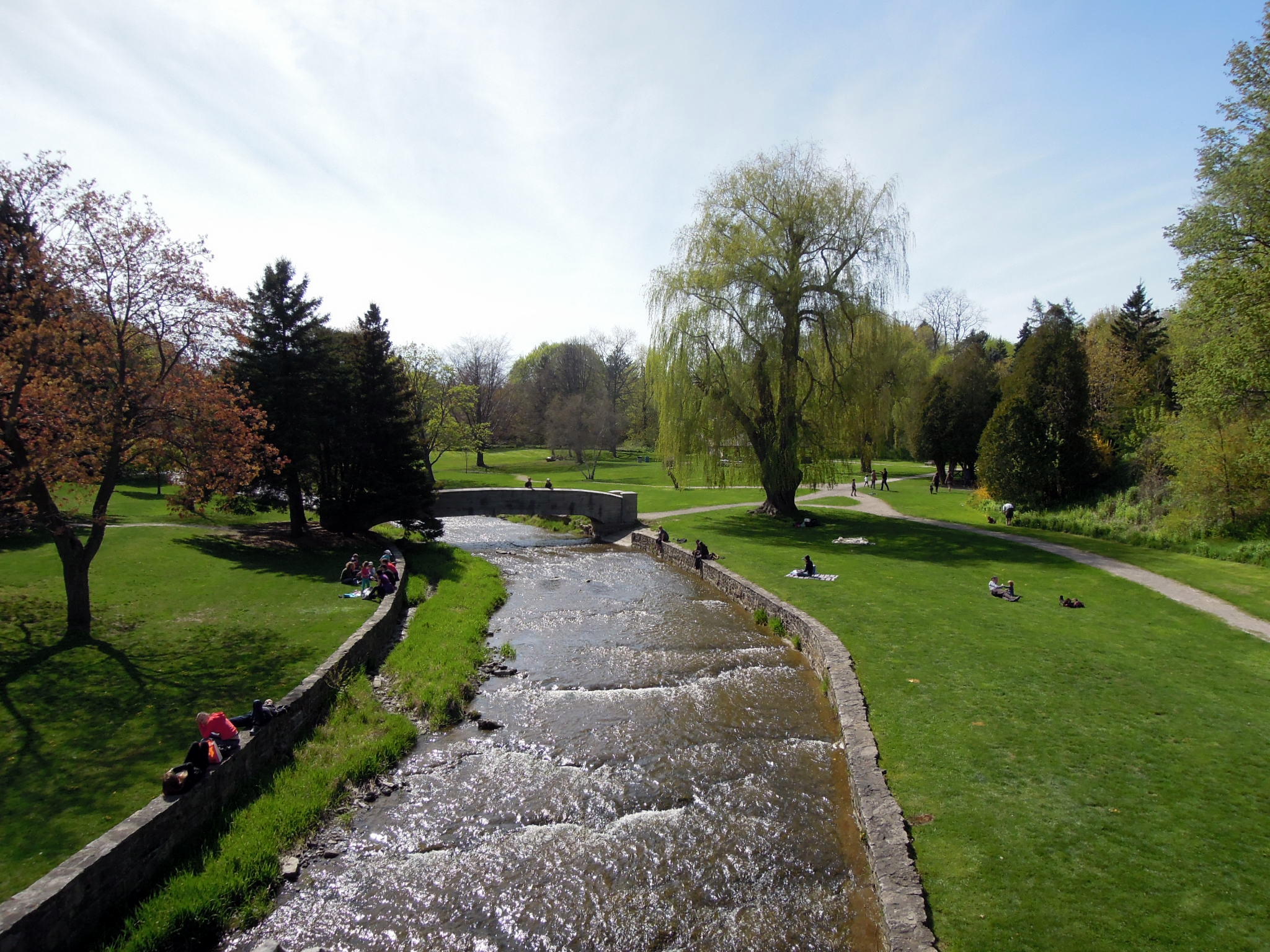 As a California girl, I’m used to seeing redwoods, palm trees, and stucco; brick houses and deciduous trees look to me like something out of a picture book. The below photo is of the recreational area by Webster’s Falls. It’s ridiculously idyllic… but I didn’t want to stop and make a sketch because the sun wasย strong! Somehow I thought the sun would be less intense further north, but no. I’ll need to get some higher-SPF sunblock than what I brought.