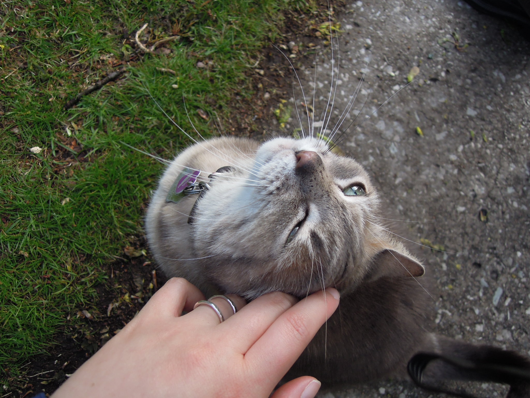 If I’m reading this kitty’s tag right, her name is Going. We’ve seen her many times and she is always uber-affectionate.