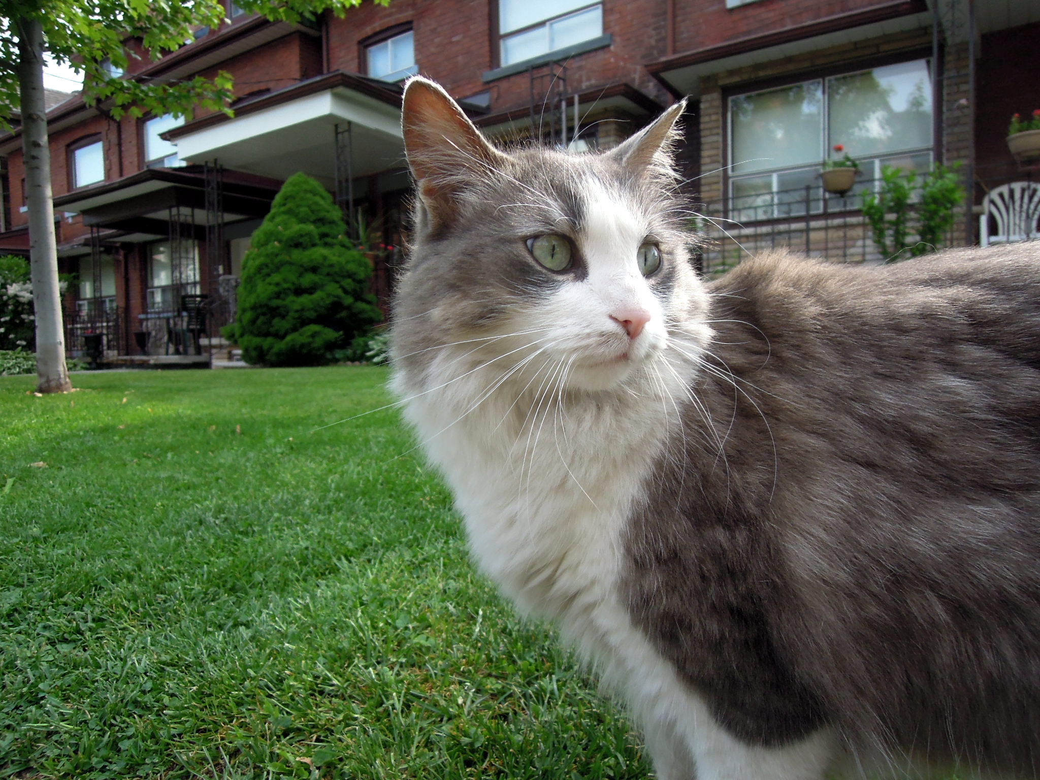 I don’t know if Canadians’ niceness rubs off on their cats, or what, but we have met so many cats in Toronto who are just ridiculously friendly, so many cats who just saw us and got up immediately and came over and said hello. Here are a couple of my new feline friends.