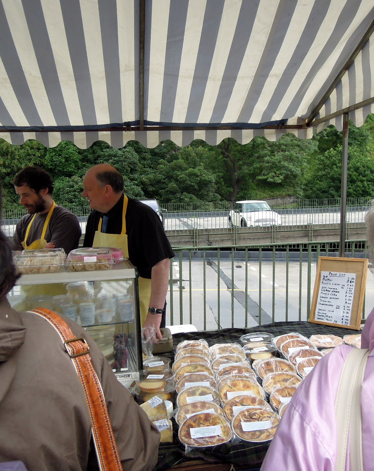 Since I missed the farmers’ markets in Glasgow, this was my first UK market. I spent about an hour there on Saturday, between breakfast and my life drawing class at the National Gallery (see yesterday’s post). It was a cute market of very respectable size and even more respectable turnout. The vendors all had striped awnings and matching signs, unlike at home where everyone brings their own tent and signage. The city’s population seemed well represented, with elderly shoppers as well as sharply dressed hipsters perusing the booths.