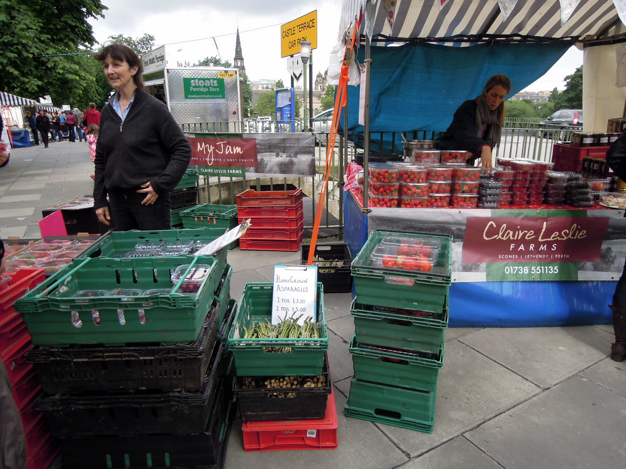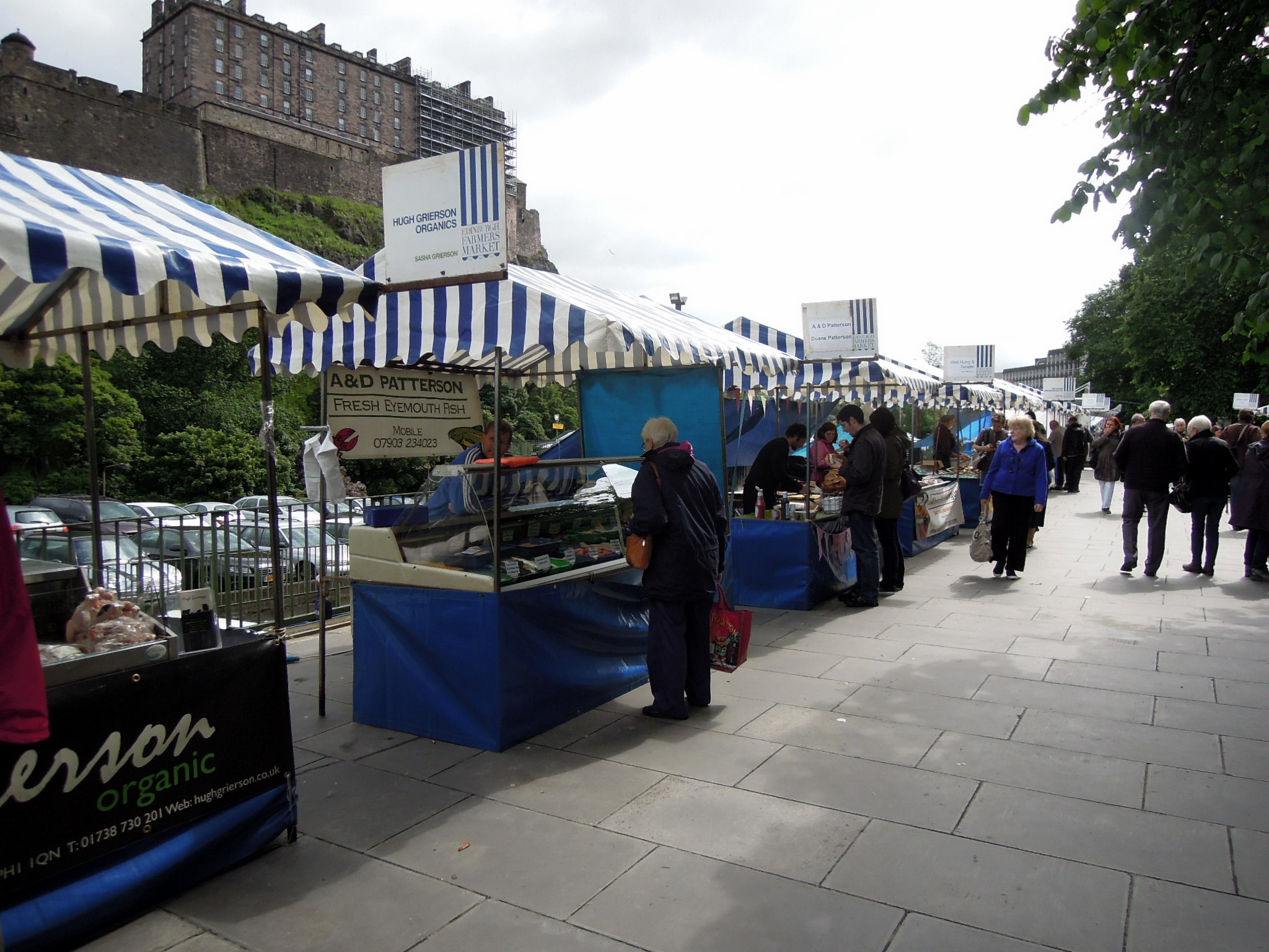 What fun — a farmers’ market with a castle looming over, like a watchful shopper surveying the goods. (Does that make us the goods?)