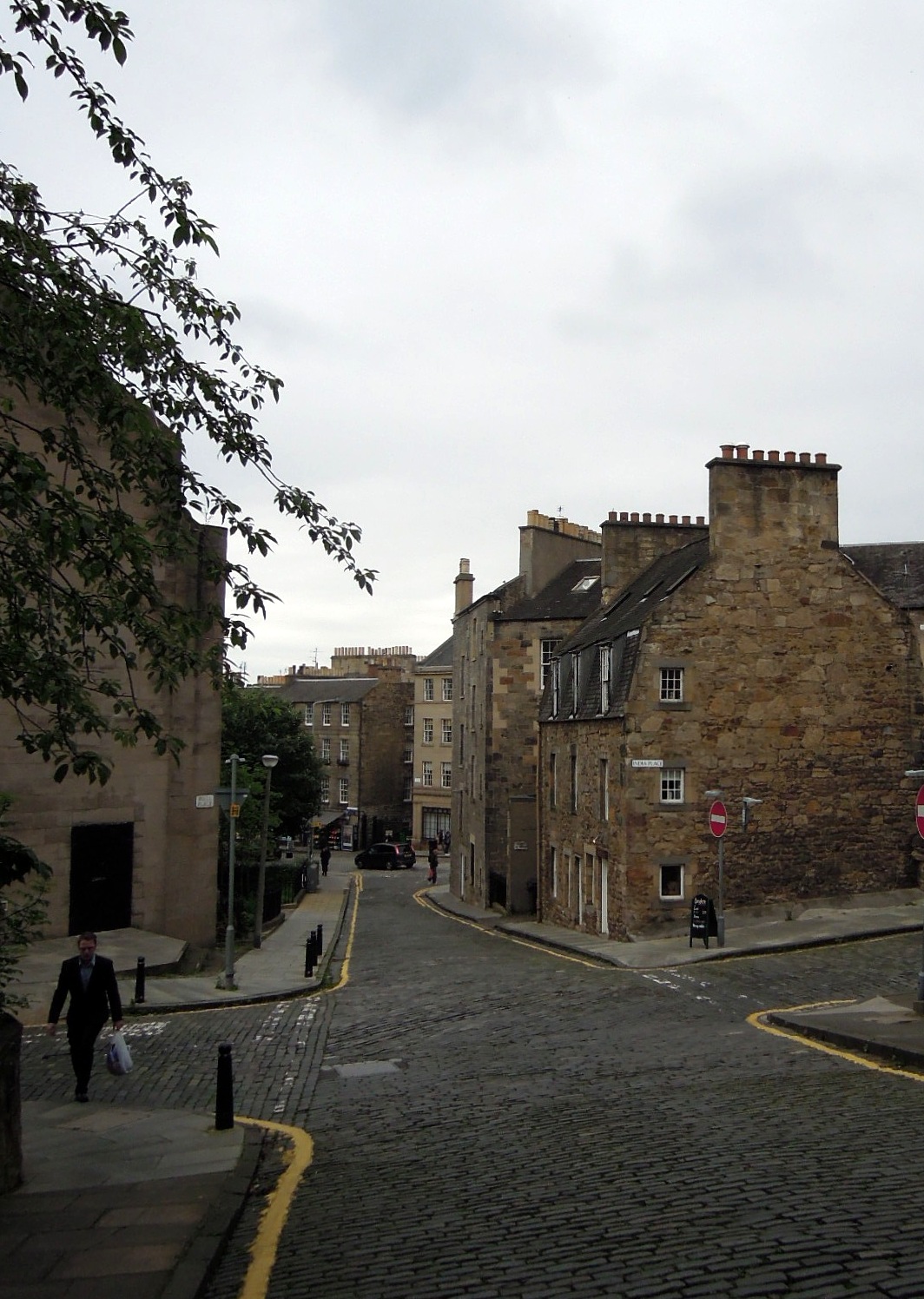 As one example: George St in Edinburgh is full of upmarket clothing chains (French Connection, Hobbs) and fancy-looking hotels and their restaurants. These don’t interest me much, so I had written off the whole neighborhood as one I wouldn’t want to revisit. In some cities this would have been a good call. But I ended up in the area again on Saturday evening, and found thatΒ Thistle St,Β a narrow cobbled street just parallel to George, is full of small independent shops (ranging from an expensive modern kiltmaker to a vegetarian deli/restaurant with live music nightly). It really surprised me to see two such different streets in such close proximity, and — since the entrance to Thistle St was so unobtrusive — it makes me wonder whether I’ve passed over other cool streets without realizing they were there.