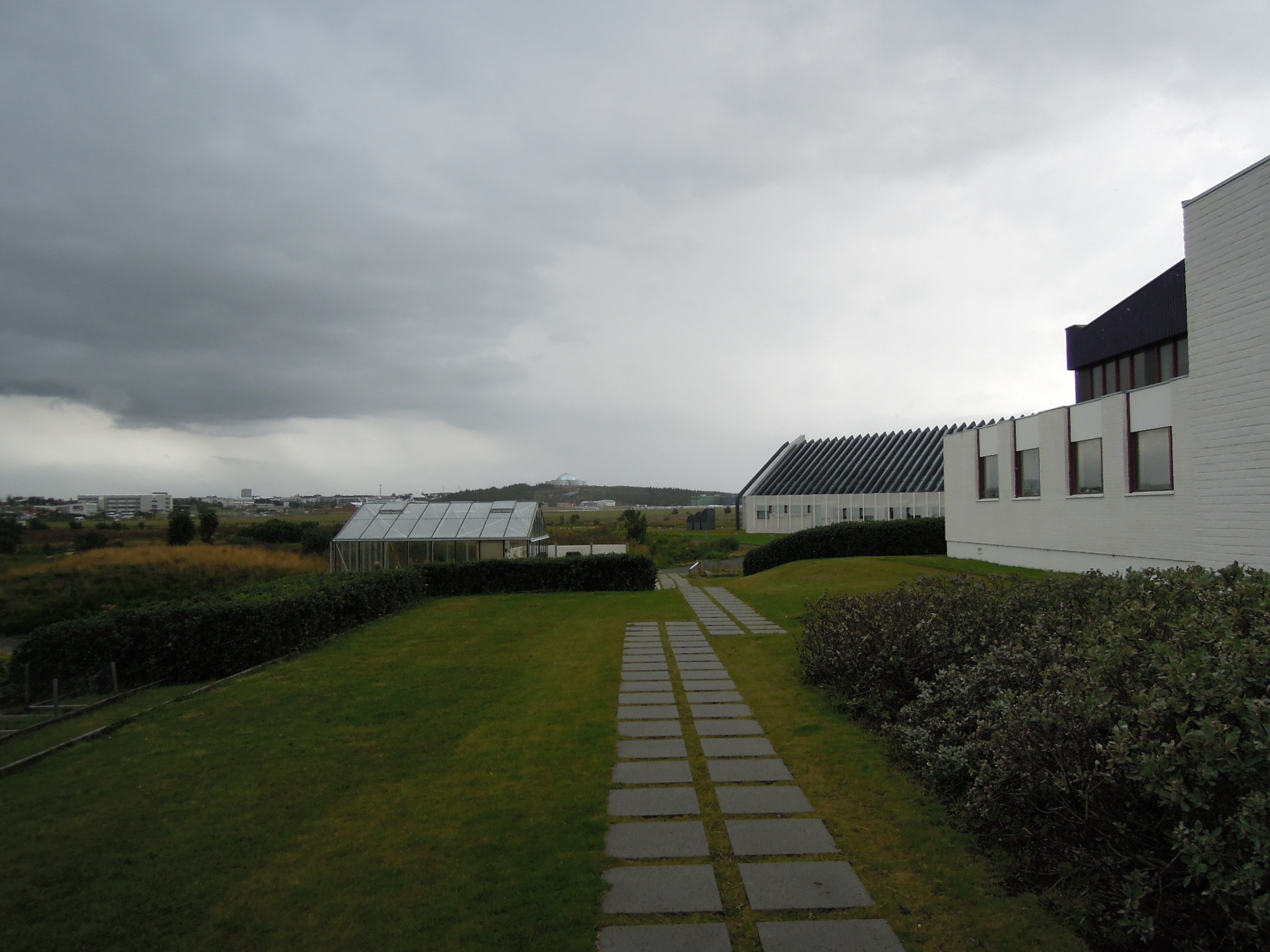 About a week ago, on our third full day in Reykjavík, Erik and I went across the city to Nordic House for a watercolor exhibit. I didn’t know much about it, except that the artist was Swedish, this was the last day of the exhibit, and the website description had intrigued me. The museum is a little walk from the main drag, so when we got there and saw nobody outside and very few cars in the lot, I had a moment’s misgiving. But the entrance was clearly marked, and the door was open, so in we went.
