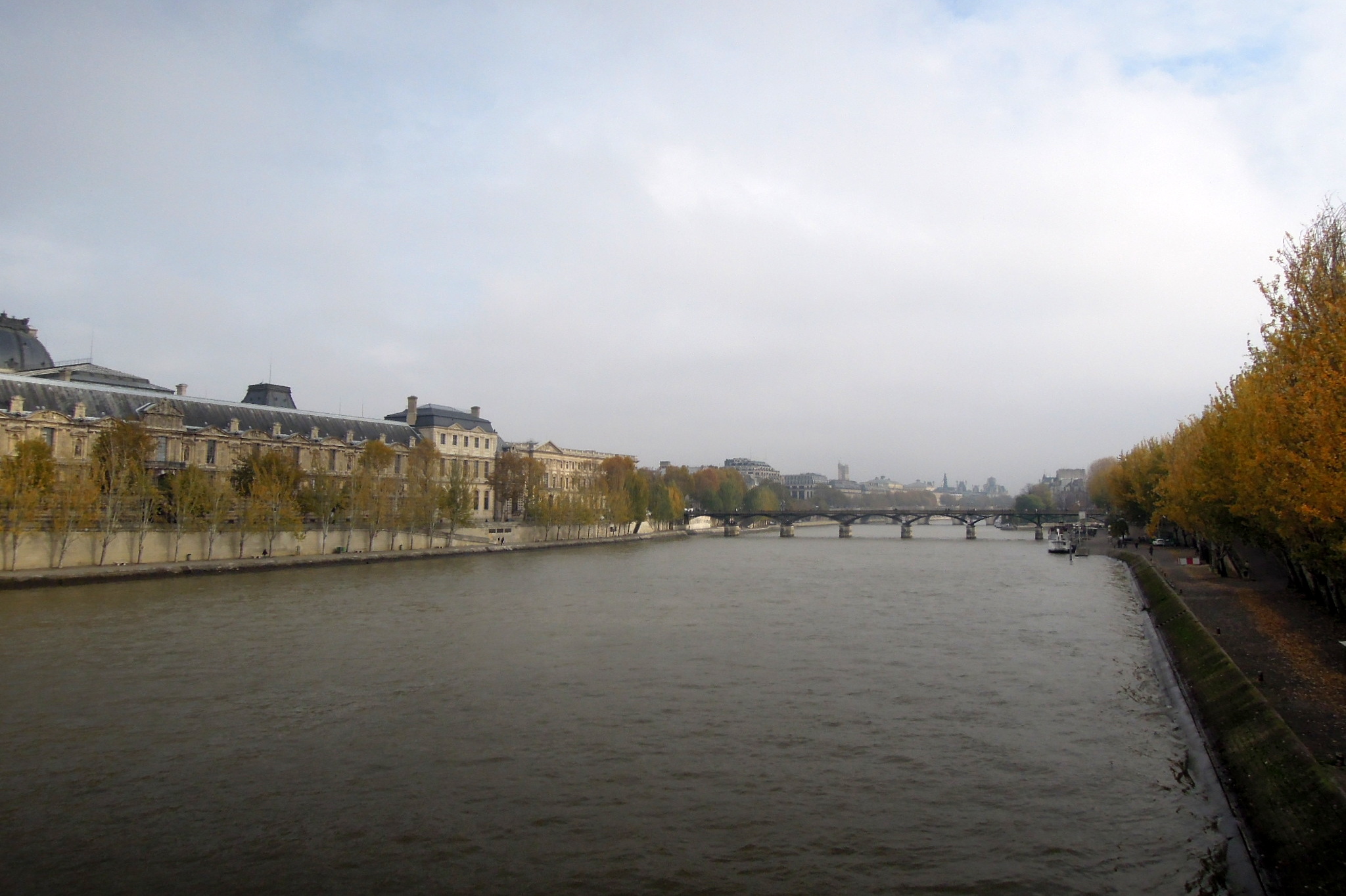 Another day I was on the bus, going… where was I going? I don’t remember, because I didn’t get there. The bus crossed the Seine and I looked out to realize the half-sun-half-fog was the perfect chance to take atmospheric photos of the bridges. The bus stopped at the Louvre and I hopped out.