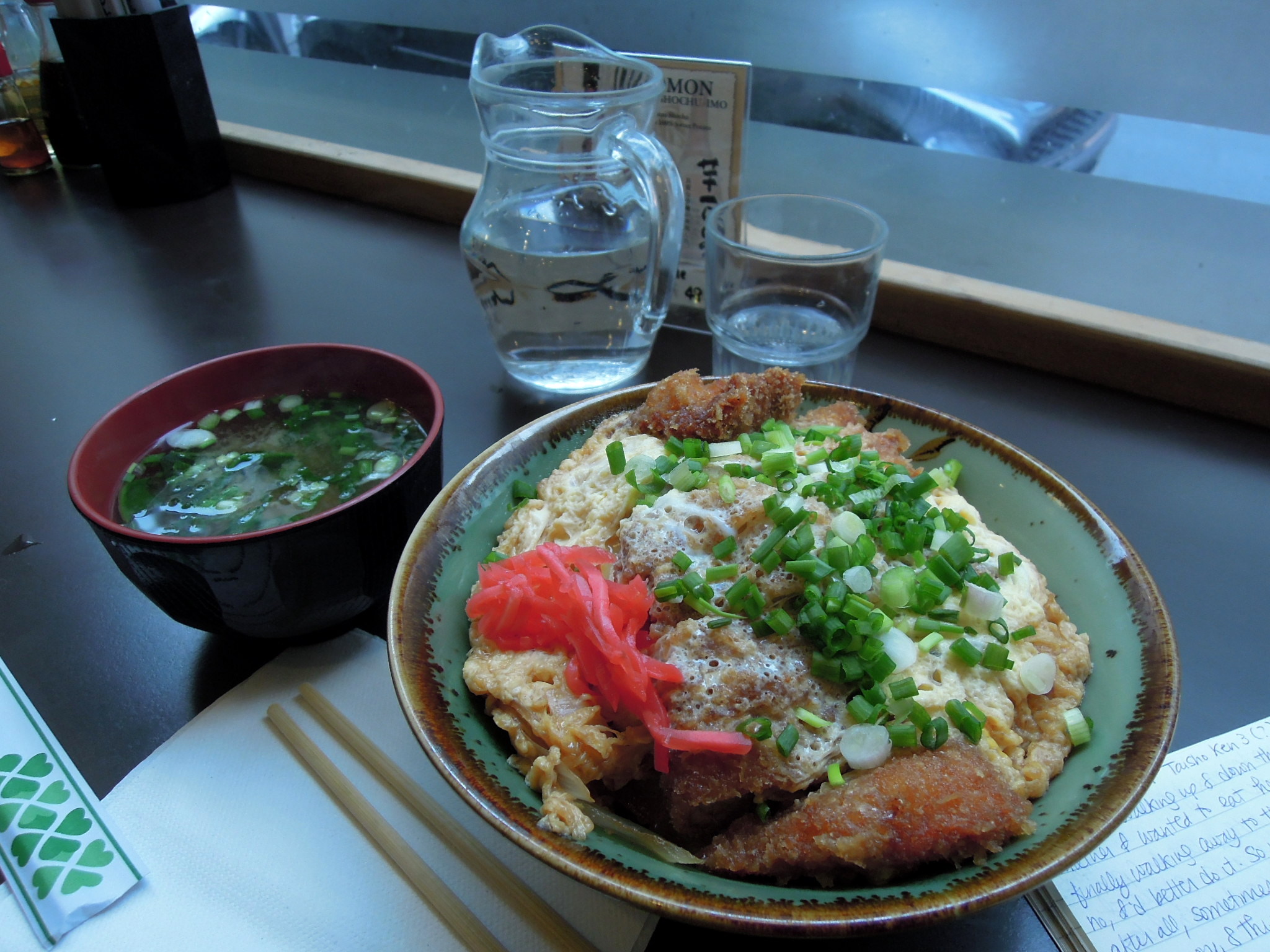 Japanese lunch: katsu donburi and miso soup