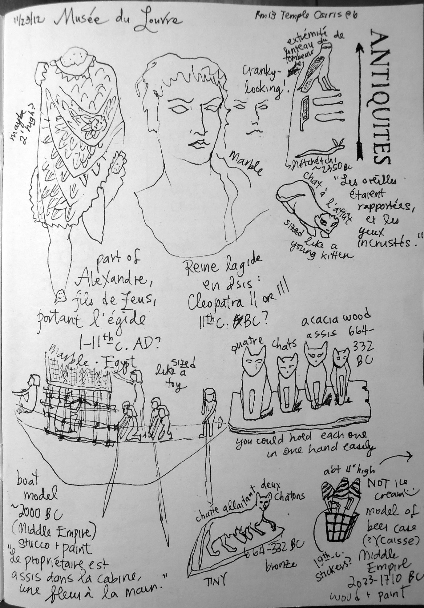 I noticed while looking at some of my other sketches that I definitely felt like I needed to make slower, more careful drawings in the Louvre. Maybe it’s the museum setting with everything in glass cases, and labeled. π I’ll play around with that feeling, next time I’m at a museum, and see if I can get faster lines out of it! It will be an interesting experiment!