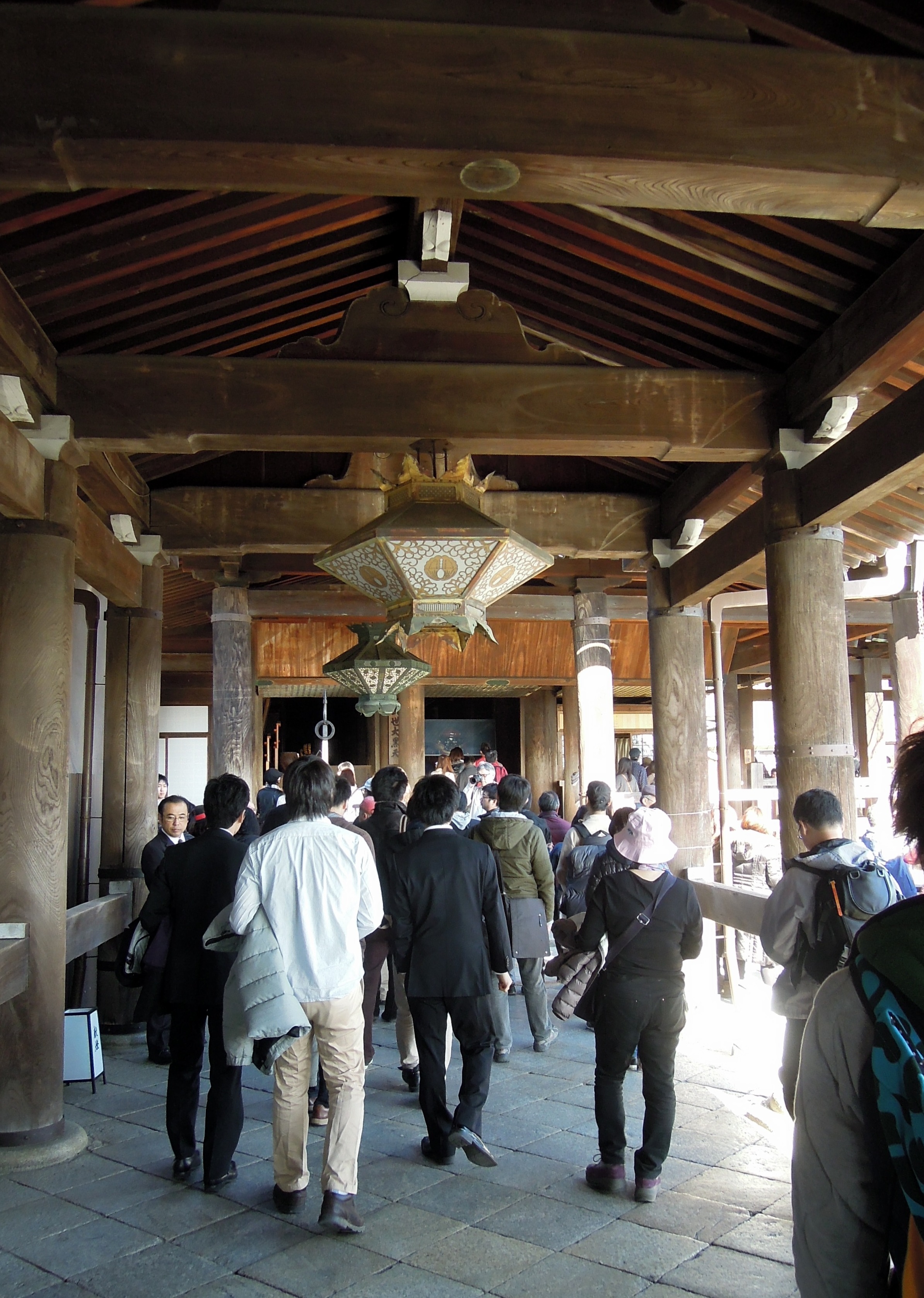 Vendors were selling hot wine (“hottu wain”), and there were a couple of cafés with dessert sets. I wanted to stop and get a parfait, but we decided just to head toward home. We passed another famous temple, Chion-in, with its massive gate that is one of the national treasures.
