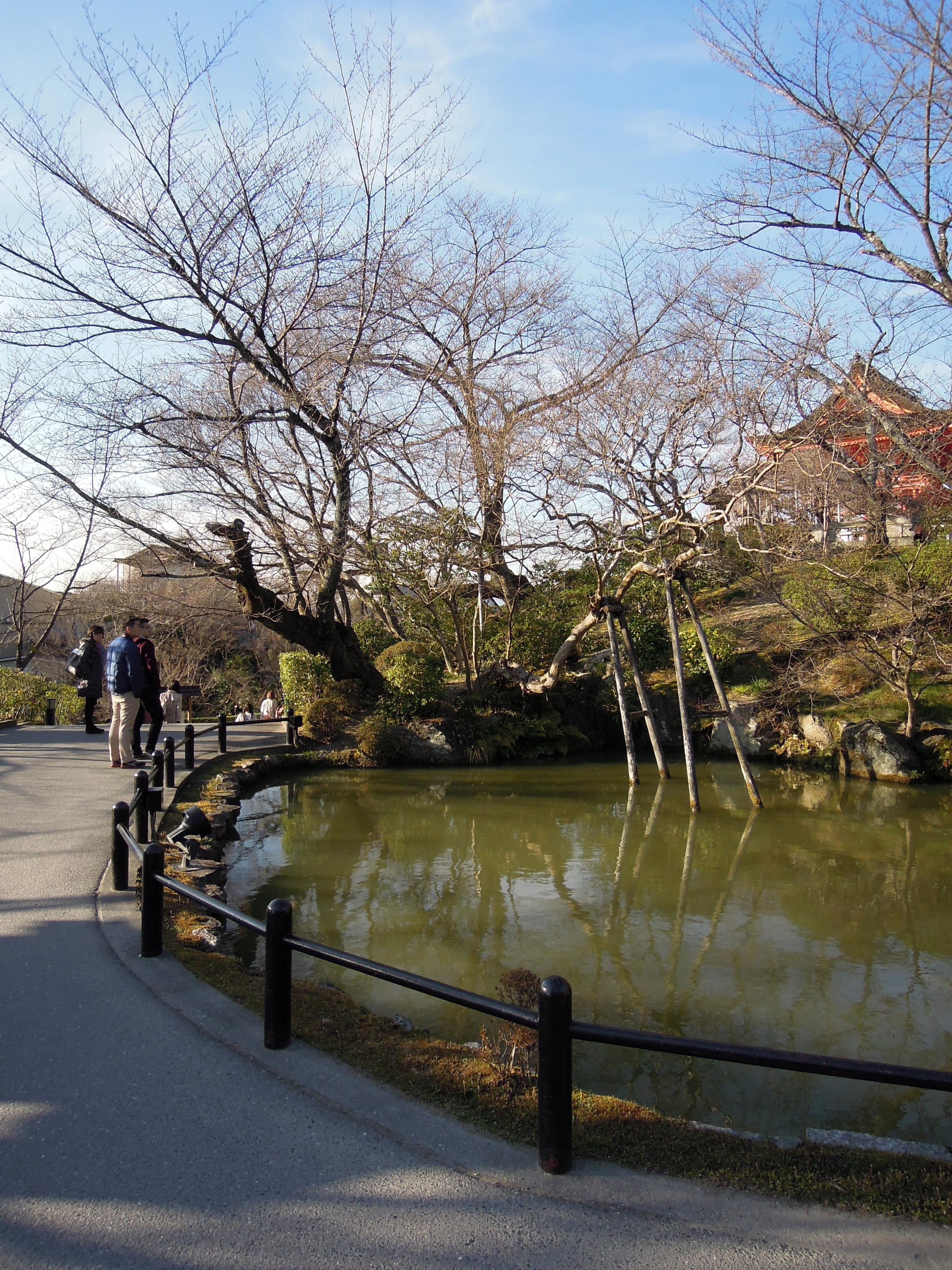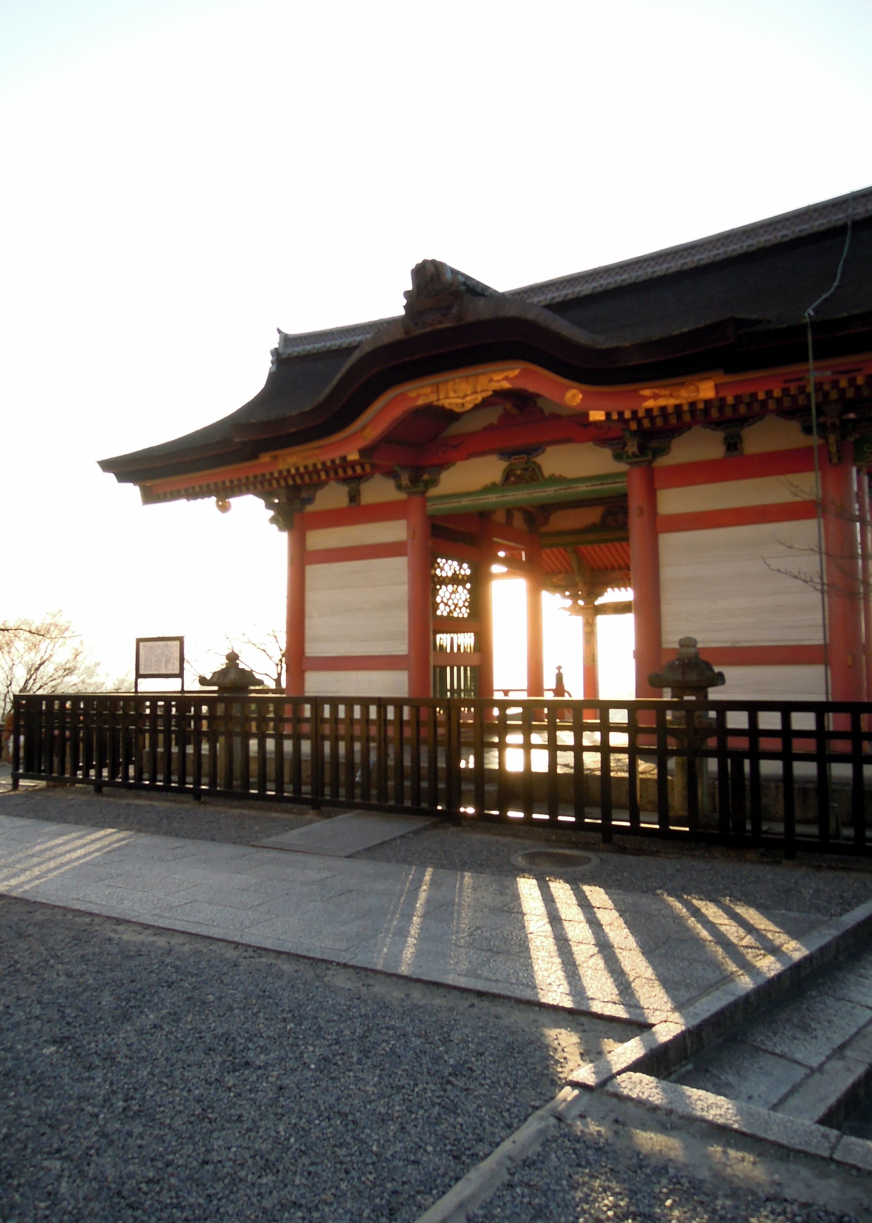 Down below (juuuust visible in the pic) there are three little waterfalls from which people line up to drink. The temple is named for these; kiyomizu means “clear water” (清水). A funny thing about the water: it’s said to have special powers, but what are these exactly? One guidebook says simply that the water is “curative,” but most other accounts ascribe a separate power to each of the three falls. One website says long life, wisdom, and love; a guidebook says long life, wisdom, and beauty. At dinner the other night with some new Japanese friends, one said, “The waterfalls give you a long life, money, and… uh… hmm.” The other four couldn’t remember either. After a moment he said, “Ah, no: long life, wisdom, and… and… hm.” In the end he offered, “Well, what would you say are the three most important things in life?” Perhaps that’s the best way to approach the waterfalls, after all!