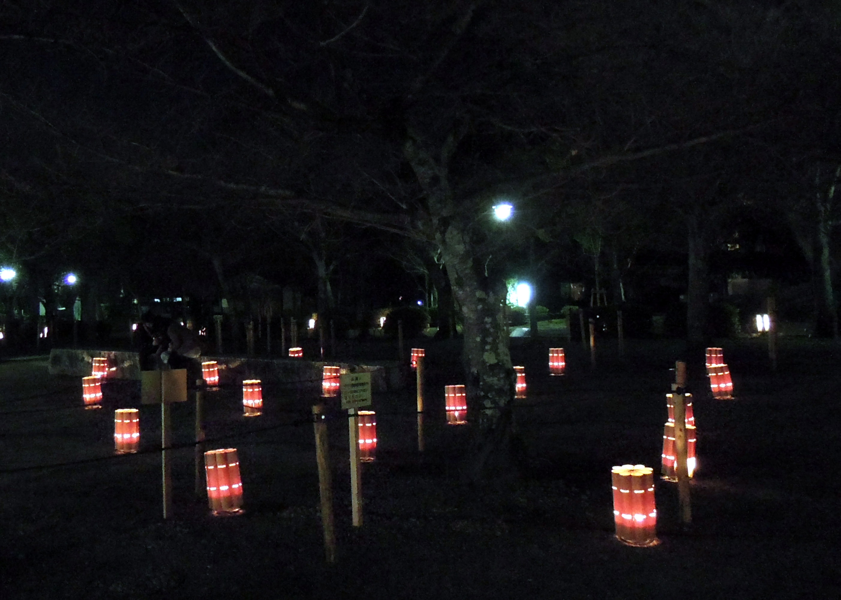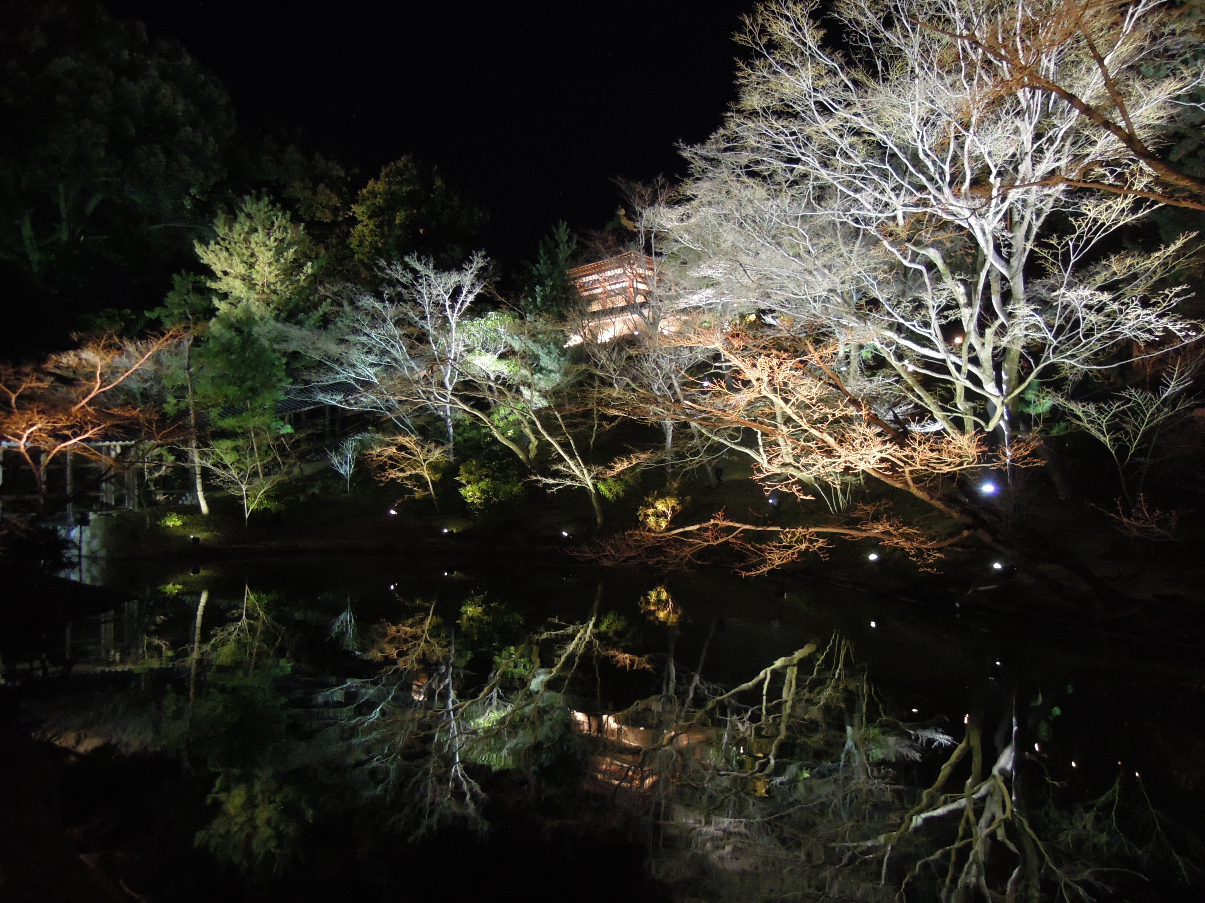 We thought of sticking around to see the temple illuminated for Hanatōro, starting at six-thirty, but ultimately we decided to move on. Other places were starting their illuminations at six, so we took a map and headed north.