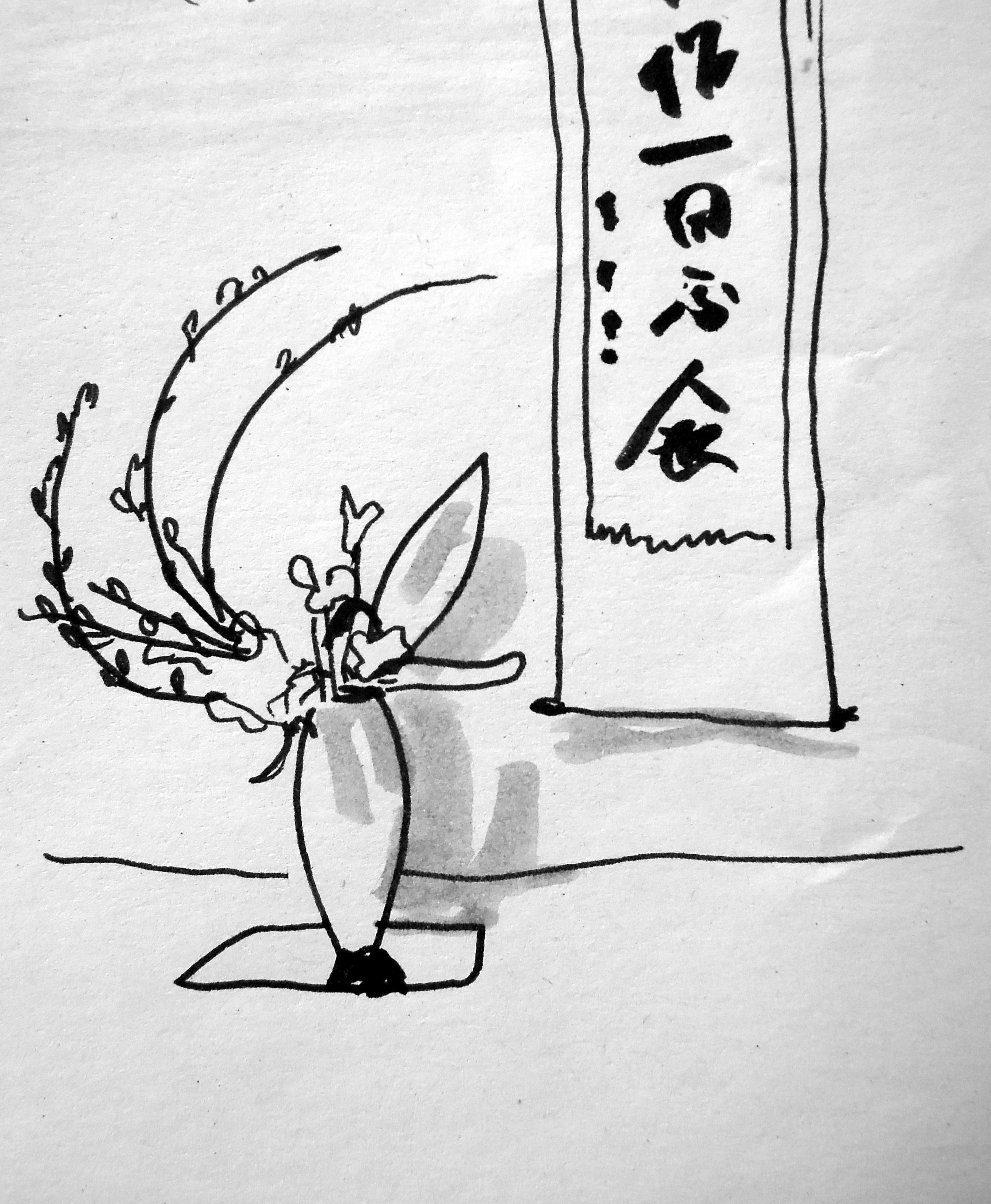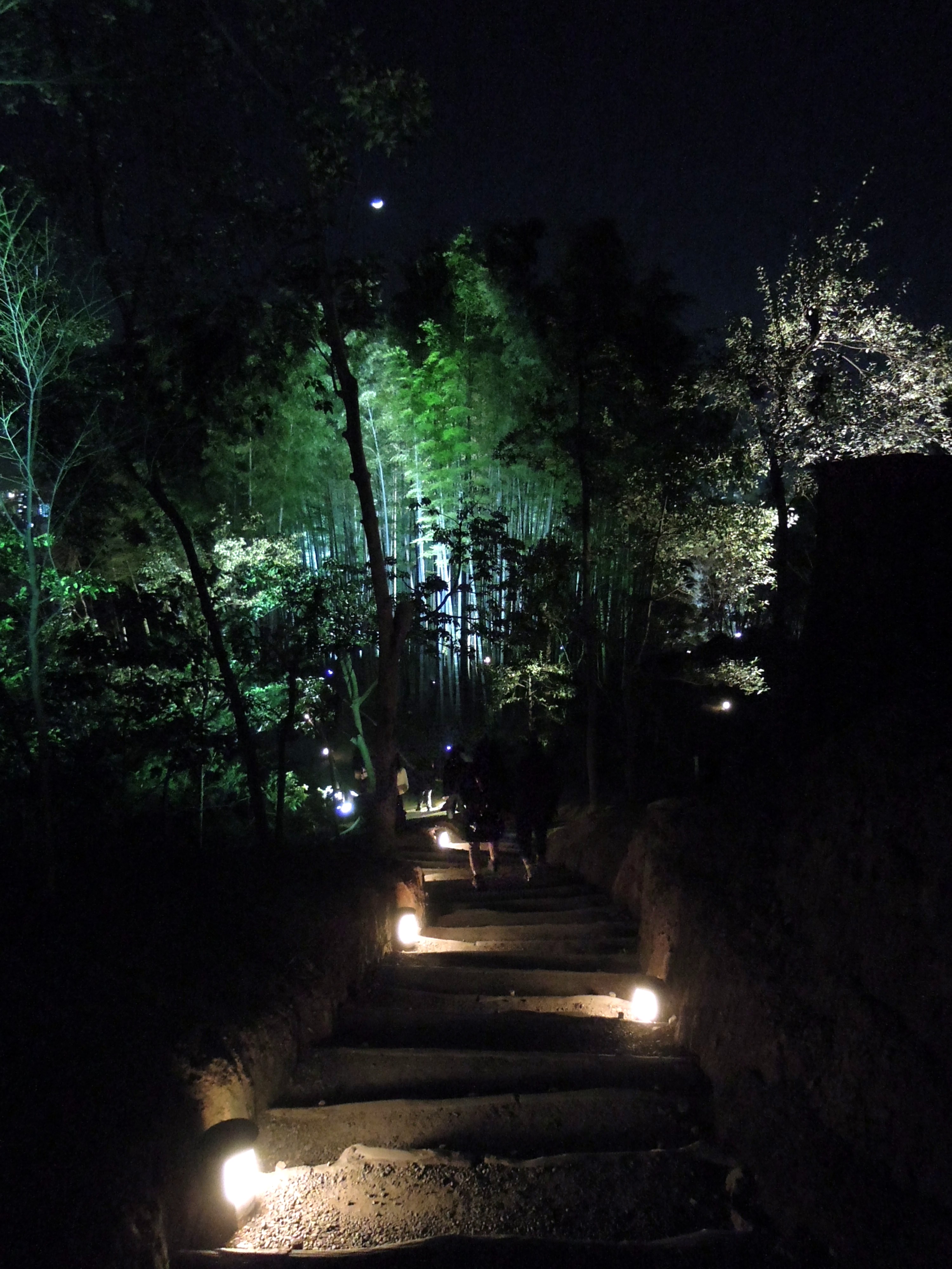 On the hill behind the buildings there was a bamboo grove with very tall trees. The air was perfectly still, so the bamboos were too, otherwise I think it might have been a bit creepy to walk among them. Bamboos make a very musical plok sound when the breeze blows them against each other — something I learned in Hawaii.