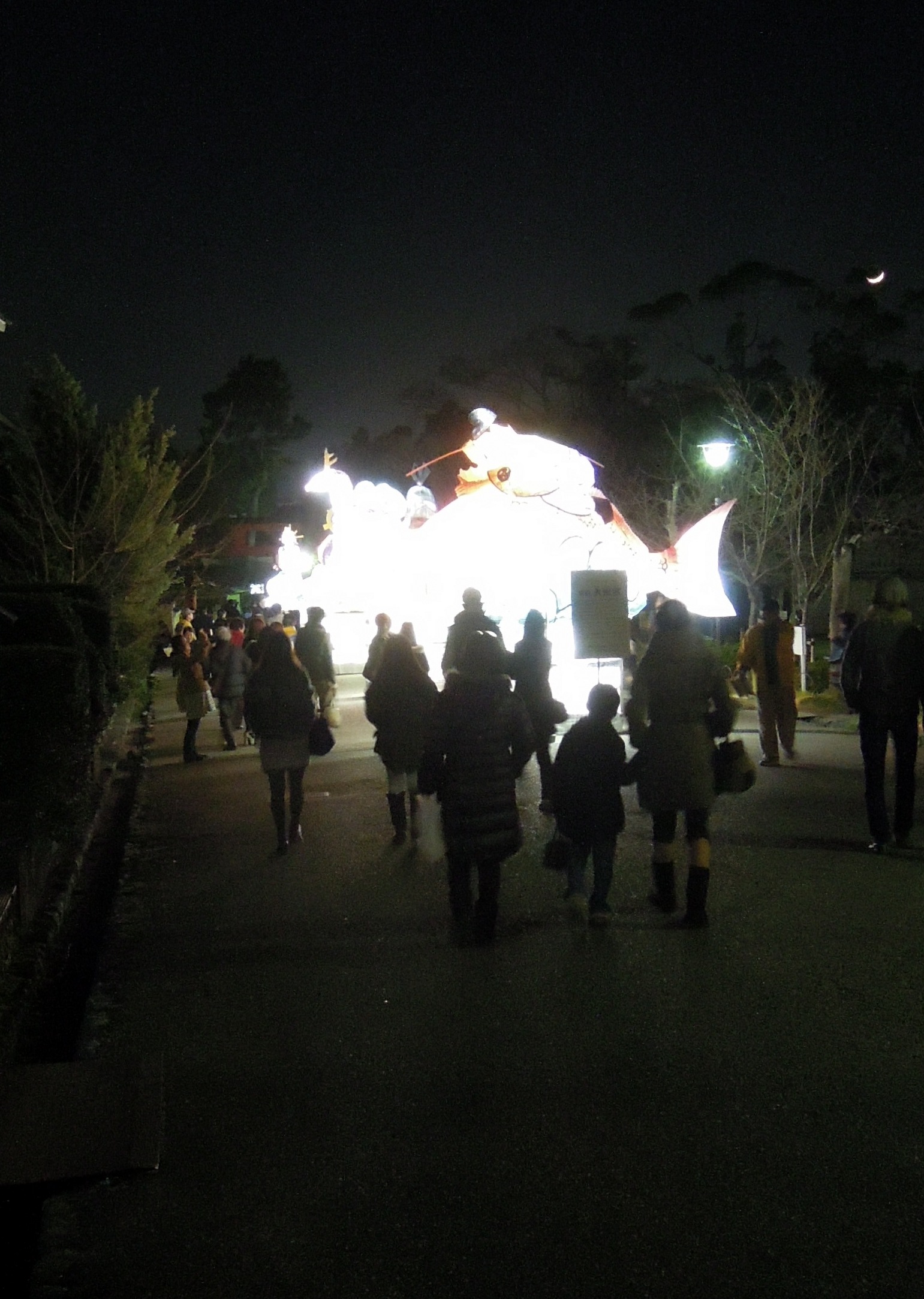 The park has some of the most exuberant displays of the festival, including many big light sculptures. There were whole groves of them, though alas, their colors didn’t photograph well.