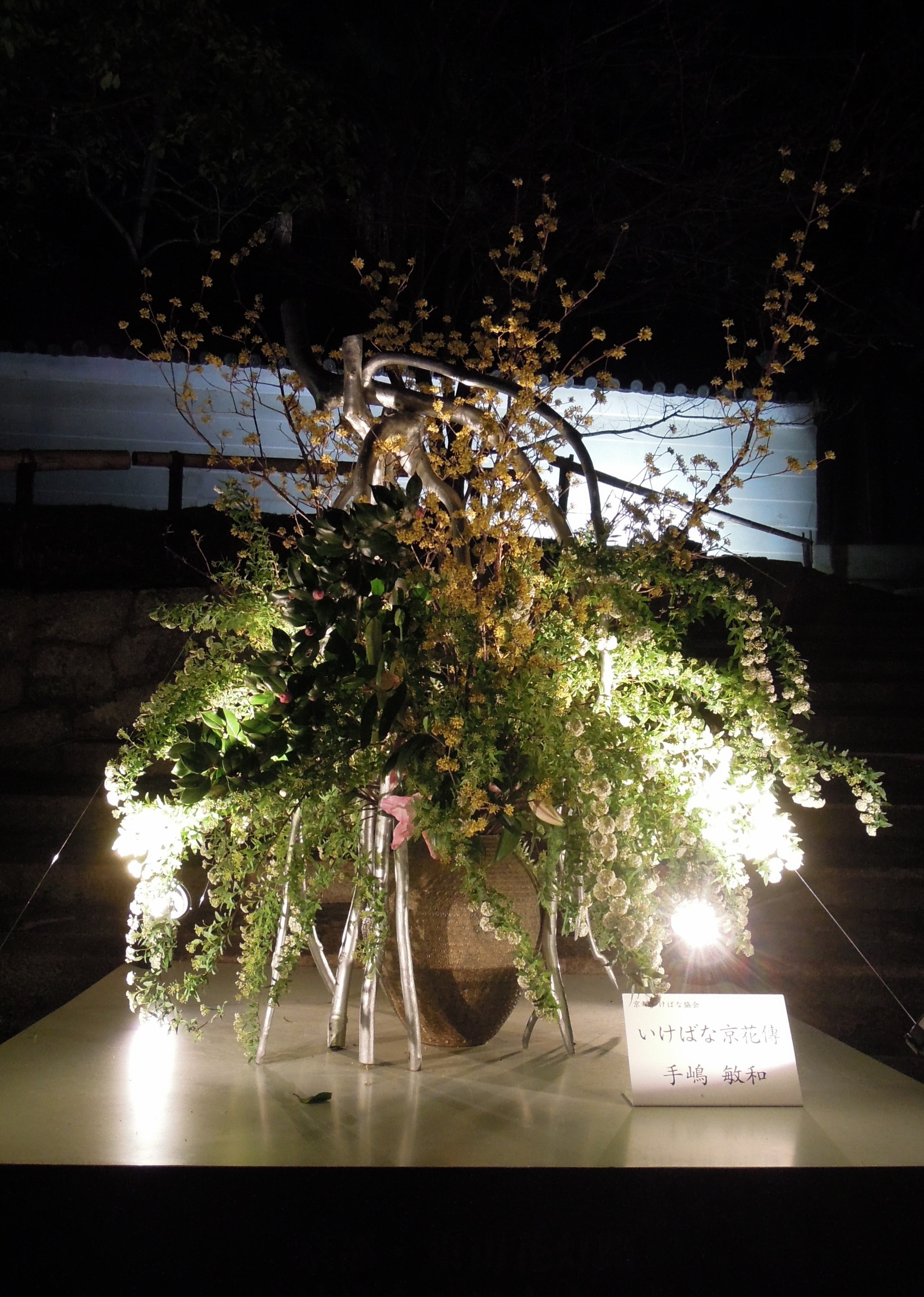 We timed our Kiyomizu-dera outing to coincide with Hanatōro, “flower and light road,” an evening festival which adorns the Higashi-yama district with about 2500 lanterns and many ikebana arrangements.