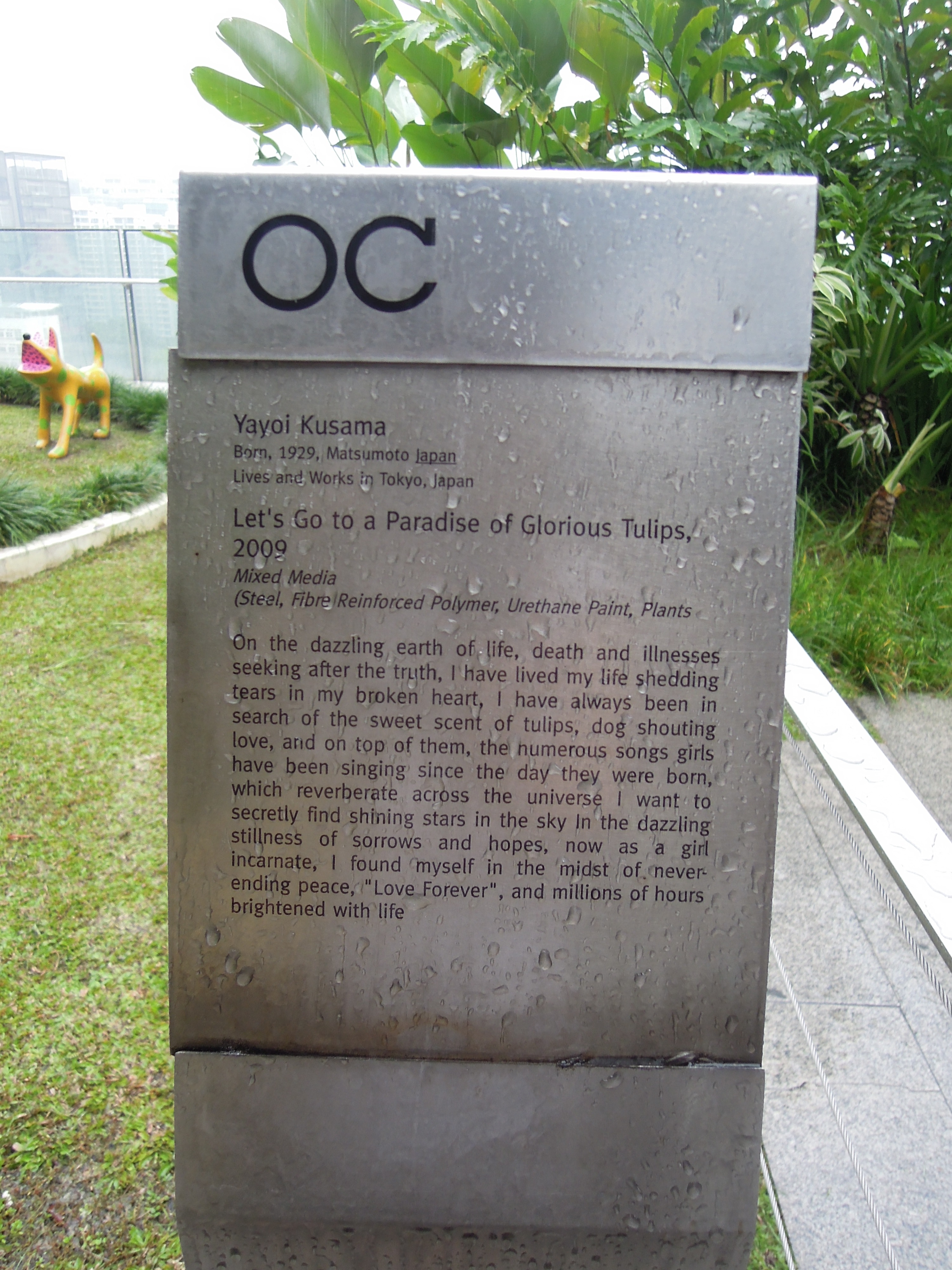 It was a really enjoyable afternoon: a leisurely, yummy glimpse at a more indie side of Singapore. But after several hours in Tiong Bahru, we were yearning for air con again, so we caught the bus back toward Orchard Road. We went to the Orchard Central shopping centre because I’d read that they had a rooftop garden and one of the world’s tallest indoor climbing walls. Alas, both were somewhat disappointing. The garden had a cute sculpture by a Japanese artist, but the space was small and it was pouring rain by the time we got up there.