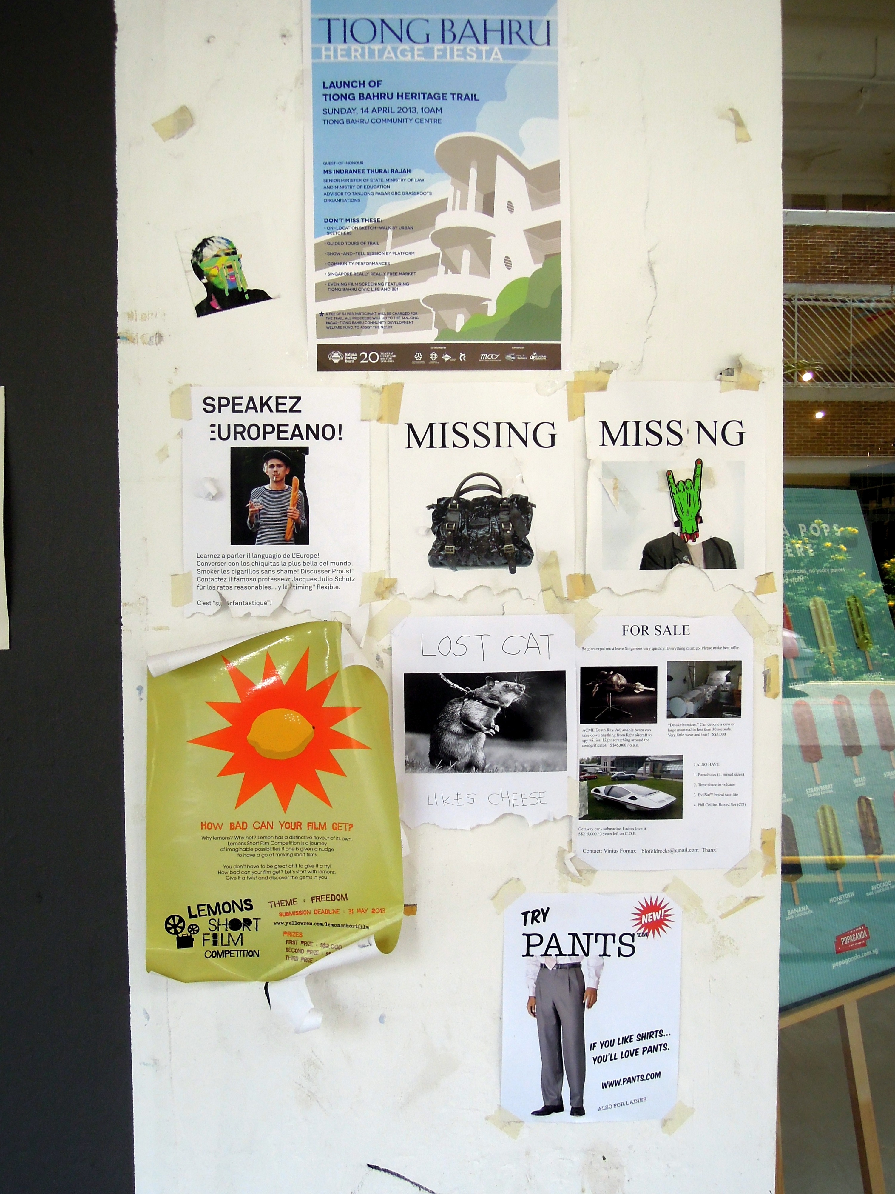 Next to one shop we stopped to read the flyers, and discovered they were fake. I couldn’t stop laughing.