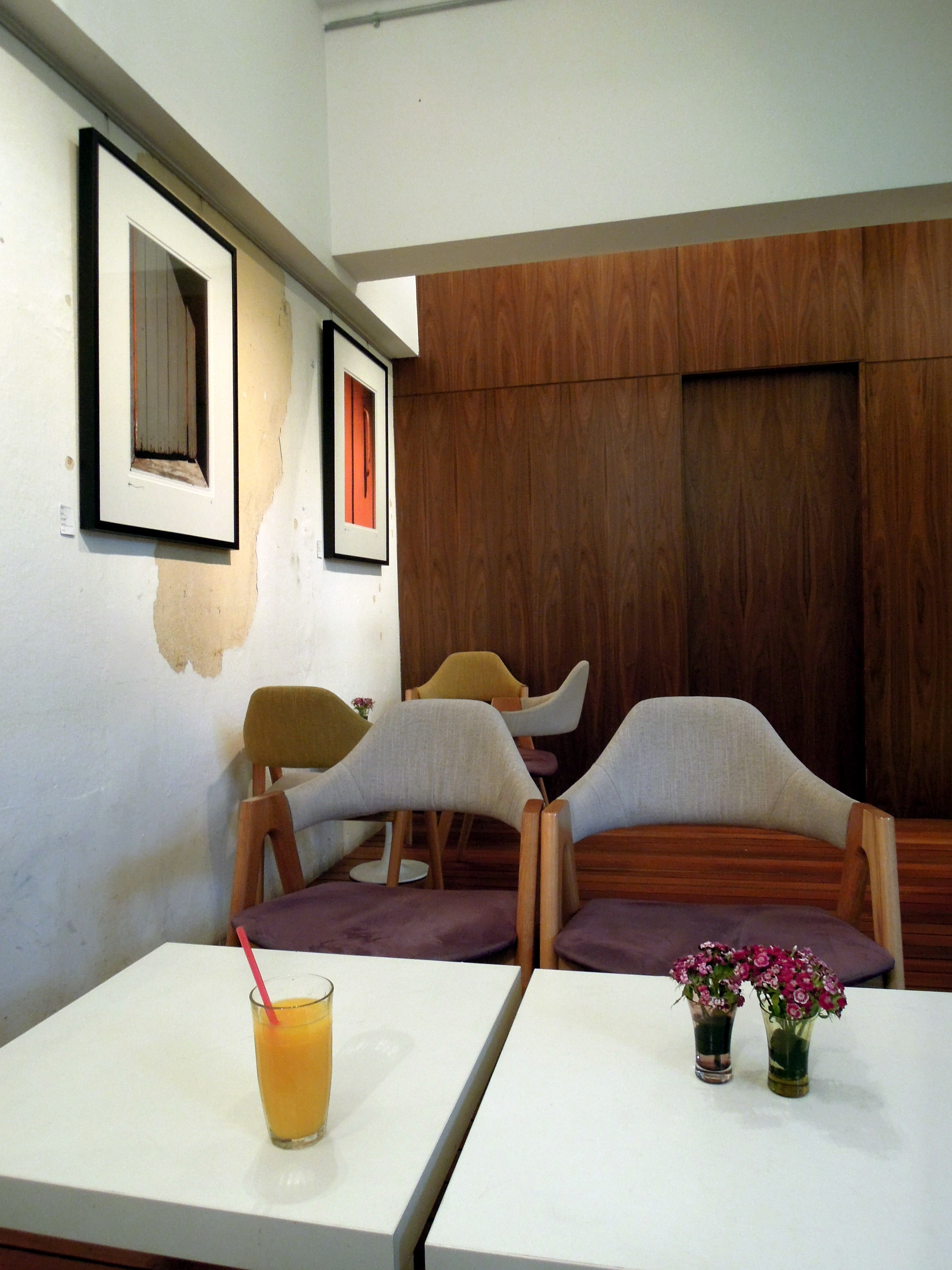 Later we stopped and rested at yet another cafรฉ, this one with artwork on its walls and signs in the restroom declaring the owners’ dedication to the community. It was a nice place with a courtyard, couches, and a wall of magazines to read (I skimmed an interview with Angela Missoni).