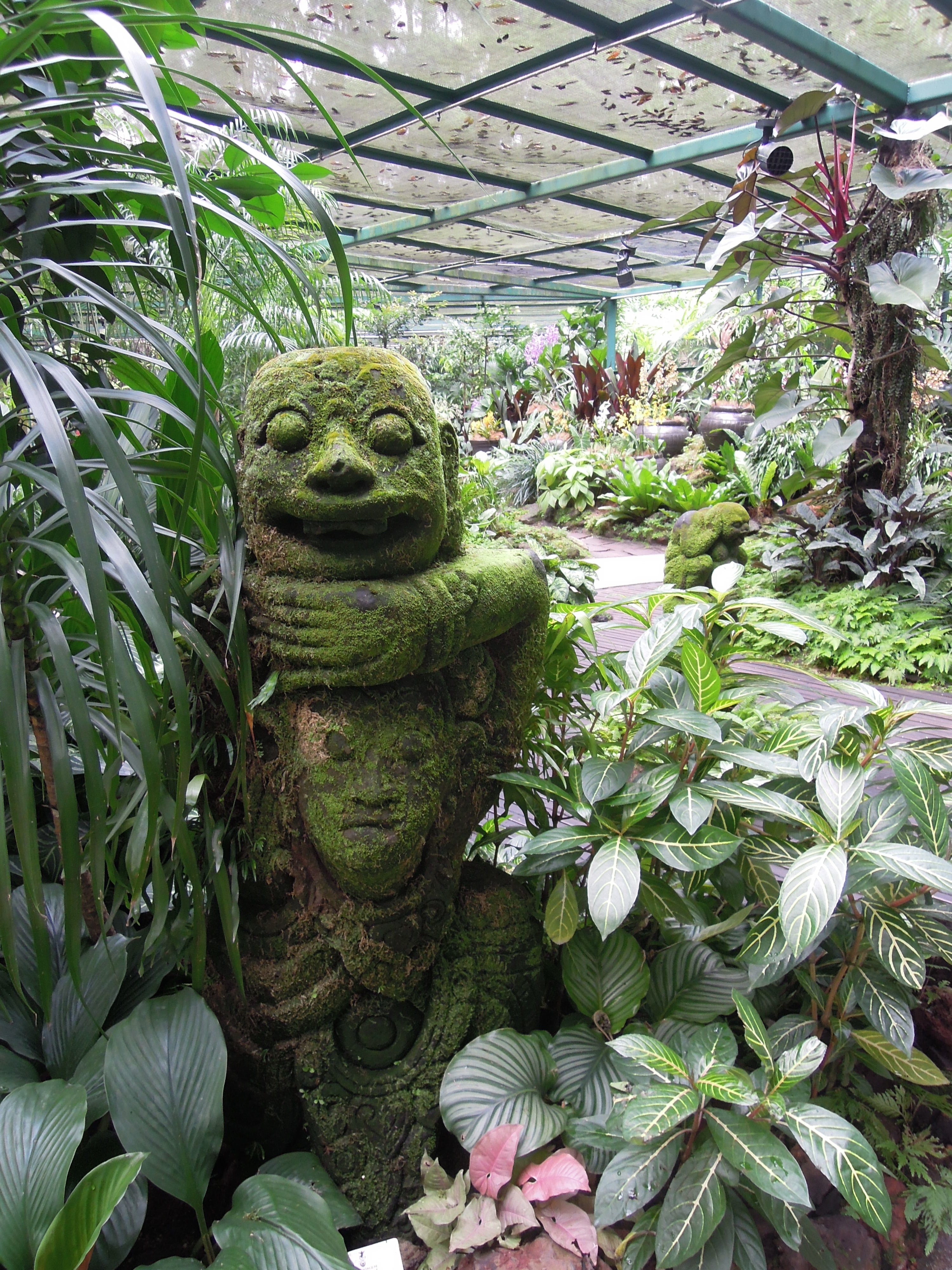 In the orchid garden we ran across a trio of staff members who were removing yellowed leaves from some of the vines. These groundskeepers were in evidence throughout the garden: pruning, clearing, tidying. They all wore long-sleeved shirts and pants and rubber boots. I hope they get to rest during the hottest part of the day.