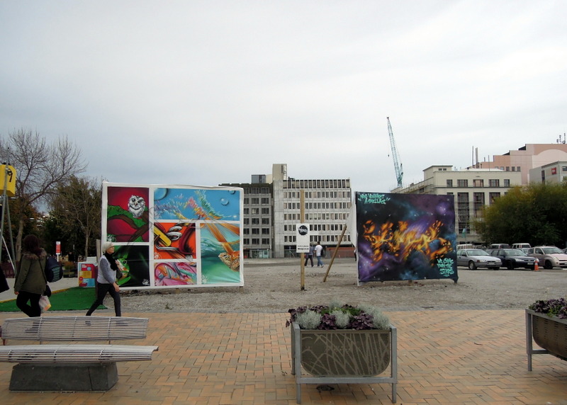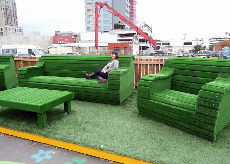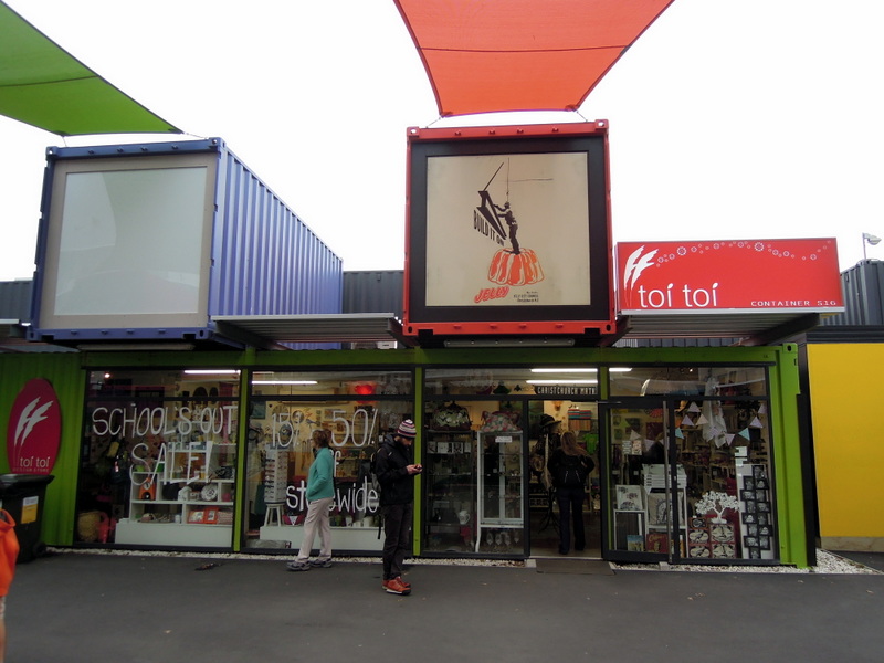 Soon we found Re:START, a post-quake outdoor shopping mall created from shipping containers. We first heard of it from our Auckland host, an architect. There were coffee shops, food vendors, a bookstore, and gift and clothing stores — many (if not all) of them relocated from other storefronts that had been destroyed or blocked off.