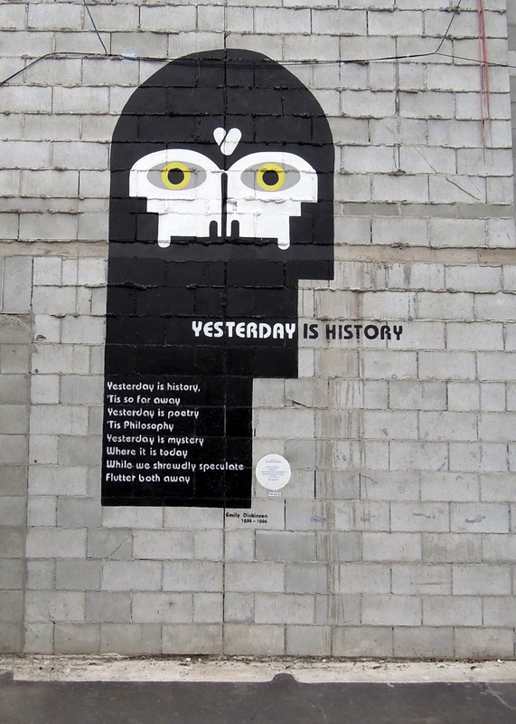 Unexpected, poignant “art” on the side of a building, leftover from another building that no longer exists: