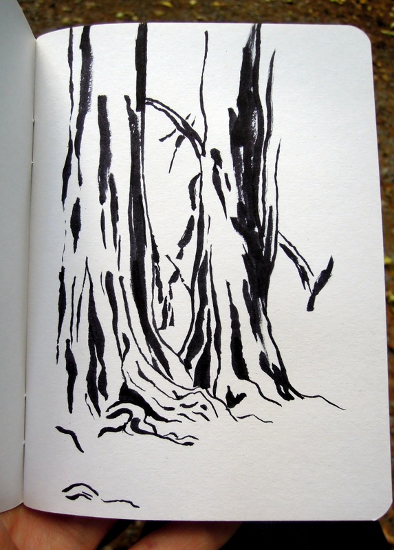 There are many benches along the river, and yesterday I sat on one and made sketches. I have a new purse that’s much smaller than my previous one, so I’ve been experimenting with a single brush pen and a more compact sketchbook.