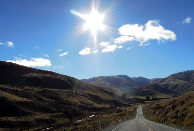 After days along the water, we now drove inland, swapping cliffs and seascapes for the rolling hills and tussock countryย of Central Otago. It’s a very sparsely populated region — 1.5 people per square kilometer! — and accordingly we saw few cars and even fewer settlements along the way.