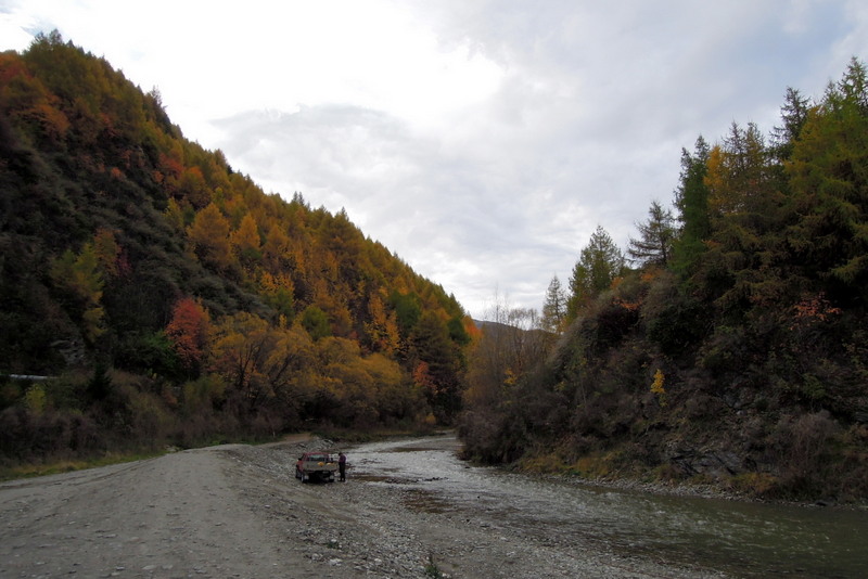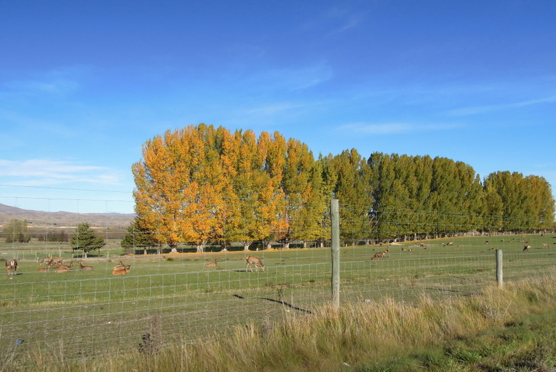 Autumn colors were still in evidence — as on this deer farm. I’ve never seen farmed venison anywhere else, but we’ve passed many such farms on the South Island. Not as many as the sheep or dairy farms, but still a good number.