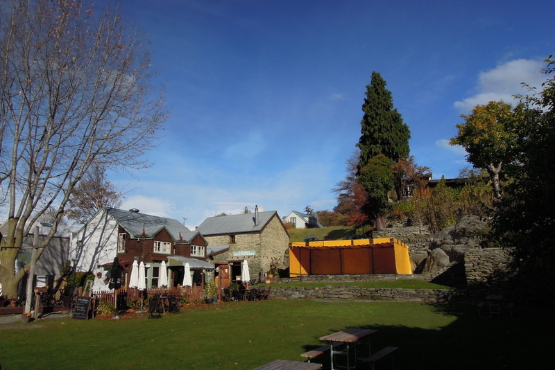 Originally we’d planned to stay in Queenstown (population 16,600), but three things drew us instead toย Arrowtownย (population 2,400, not counting seasonal residents). First, our Auckland hosts and their friends told us there was a Chinese mining settlement in Arrowtown. Of course I wanted to see that. Second, our Oamaru host opined that Queenstown and the nearby town of Wanaka are mostly tourist traps, and suggested Arrowtown as an alternative. Third, when I hunted through Queenstown AirBnB listings, most of the places were very expensive and obviously catering to a well-heeled tourist market (mostly devotees of winter sports). We ended up booking a non-AirBnB accommodation, but we’re so glad we stayed in this place, even though (in fact, because) it’s outside of Arrowtown proper. It felt so secluded. This is the view down the driveway: