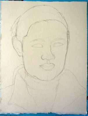 Here’s the finished portrait, a bit distorted once again (though this time because of buckling in the paper):
