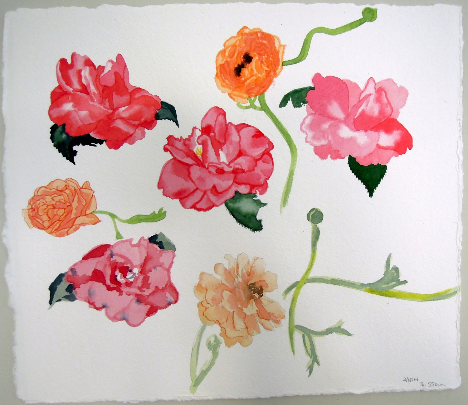 That orange ranunculus at the top of the painting has my heart. One of my favorite flowers, one of my favorite colors! Lovely!