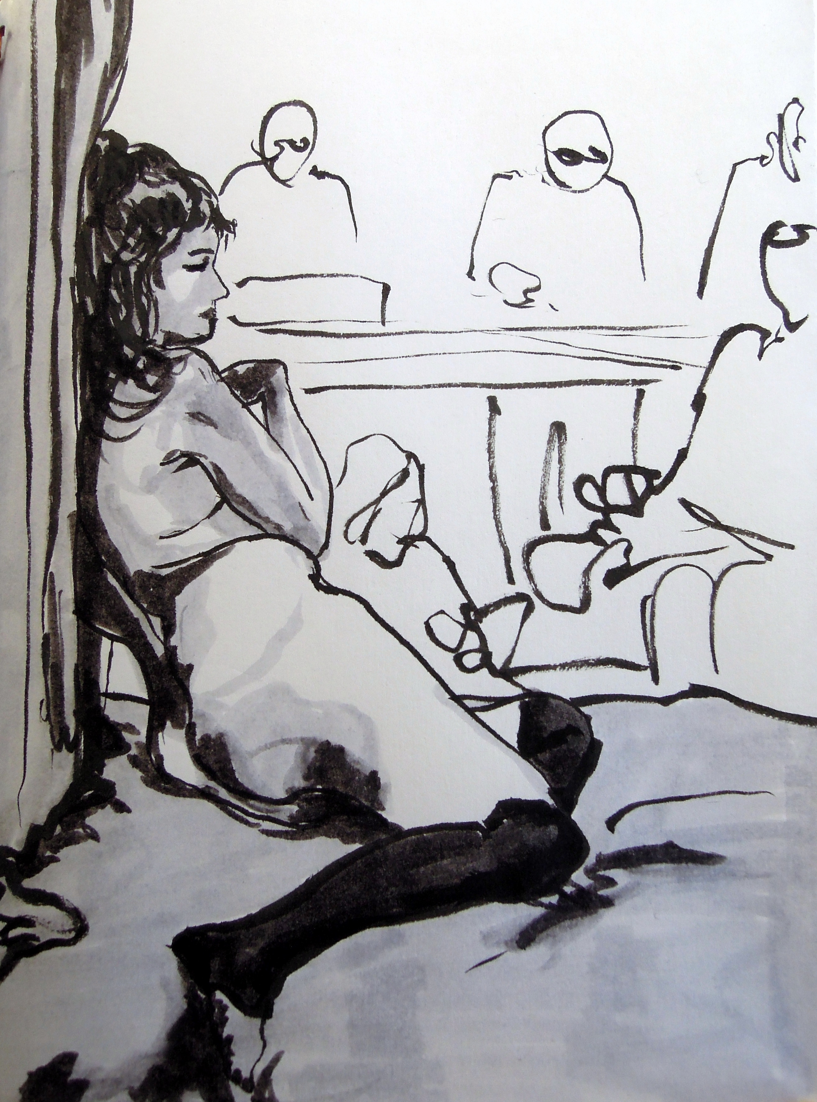 Marker sketch of a seated nude woman, by Lisa Hsia