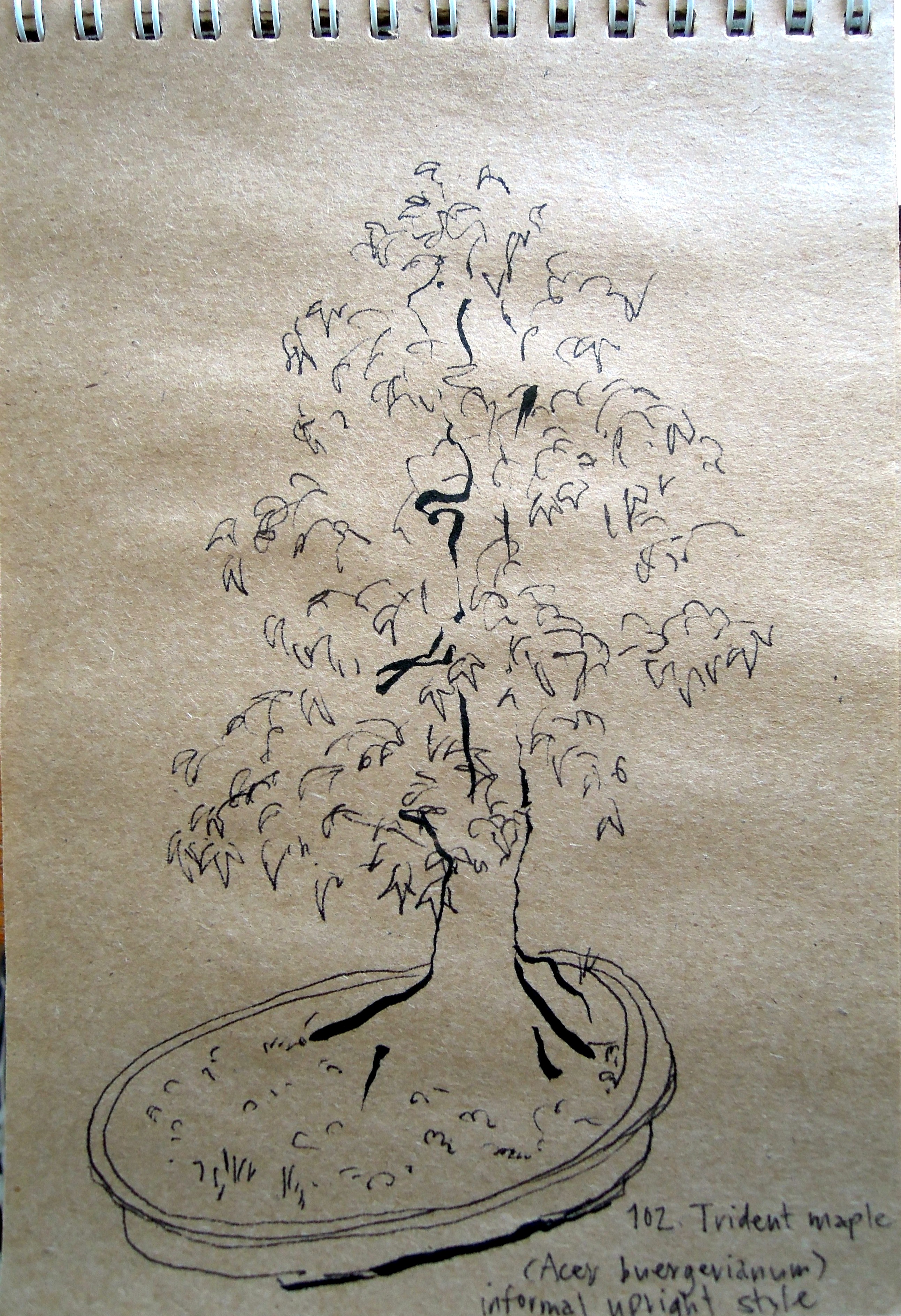 Sketch of trident maple at the Bonsai Garden at Lake Merritt, Oakland